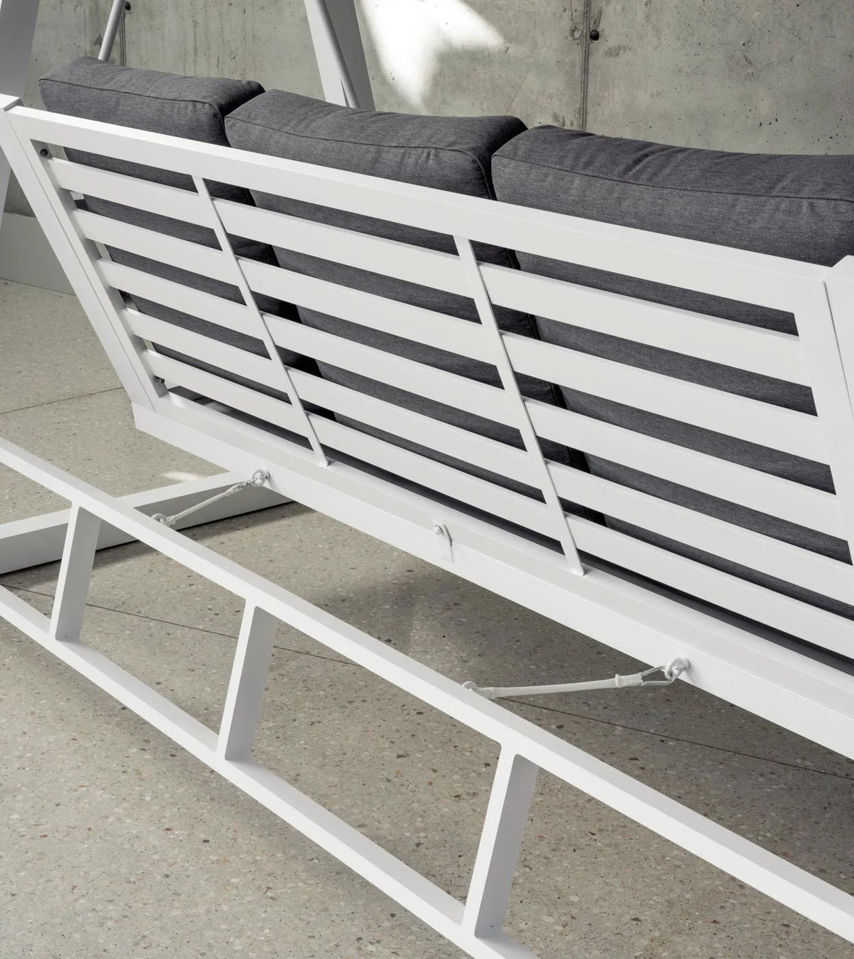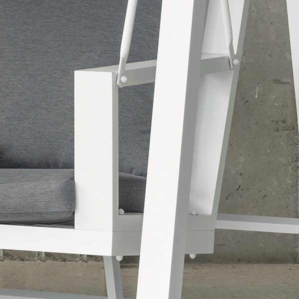En la fabricación de este balancín, se han utilizado las mejores materias primas que lo hacen muy resistente y duradero. Estructura y uniones fabricadas en aluminio extrusado de alta calidad y no reciclado. Los tubos de aluminio que la forman están perfectamente lijados para eliminar cualquier imperfección o irregularidad en las juntas. Así mismo, dichos tubos están especialmente pulidos para abrir los poros del aluminio y facilitar la fijación de la pintura. Las patas llevan tacos para evitar rallar el suelo y reducir el ruido producido con el movimiento. Fabricamos la estructura en seis colores distintos; champagne, marrón, negro, plateado, blanco y gris antracita.