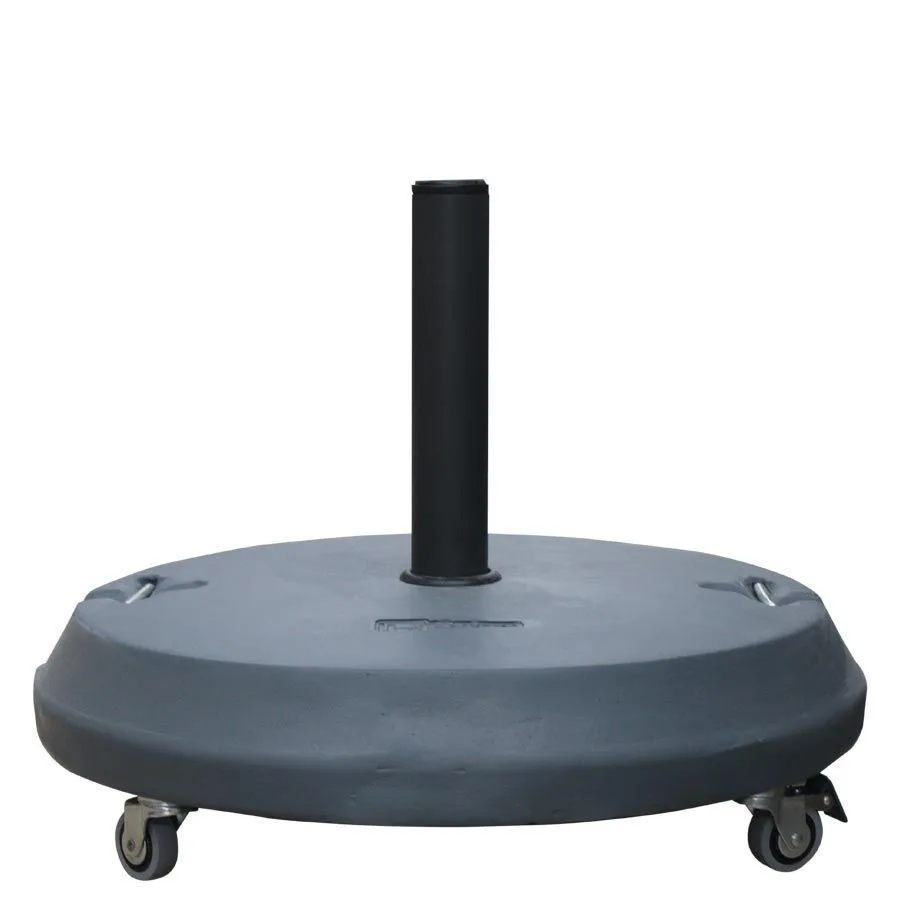 Sólida, estable y firme base redonda con ruedas fabricada con cemento de 40 kg. de peso, que garantizará firmeza y estabilidad a tu parasol o sombrilla.