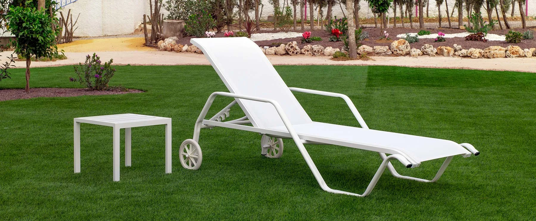 Relajación Premium con nuestra tumbona con ruedas y textilene resistente