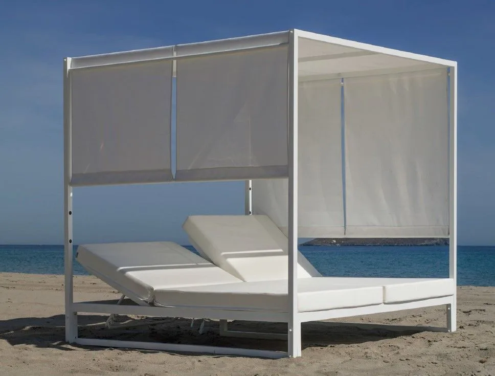 Nuestra cama balinesa de piscina combina elegancia y funcionalidad con estructura de aluminio extrusado premium resistente al salitre y condiciones climáticas. Incorpora doble respaldo multiposiciones independientes y toldo de textilene regulable para máximo confort. Los cojines desenfundables de 12 cm con materiales específicos para exterior garantizan durabilidad y fácil mantenimiento.