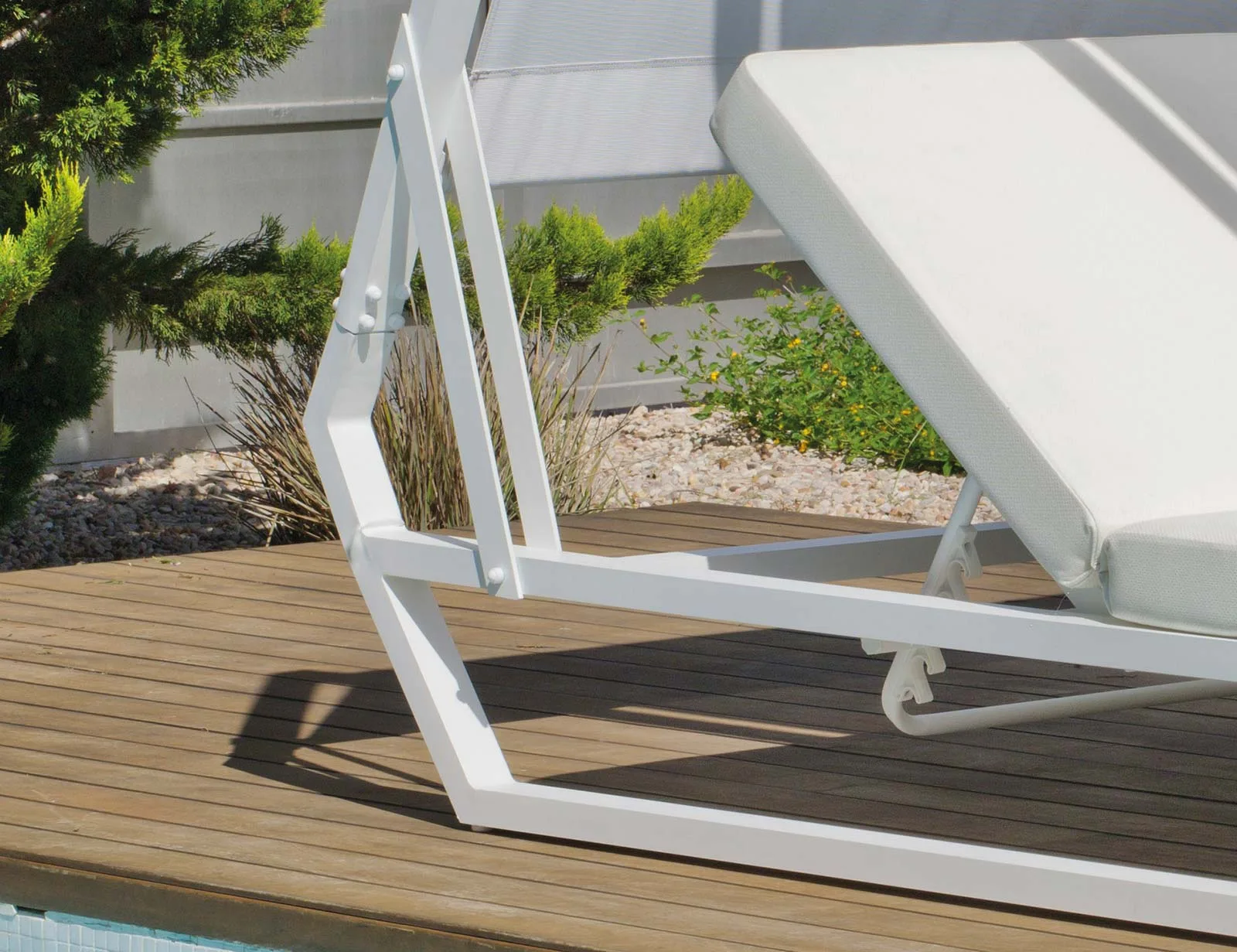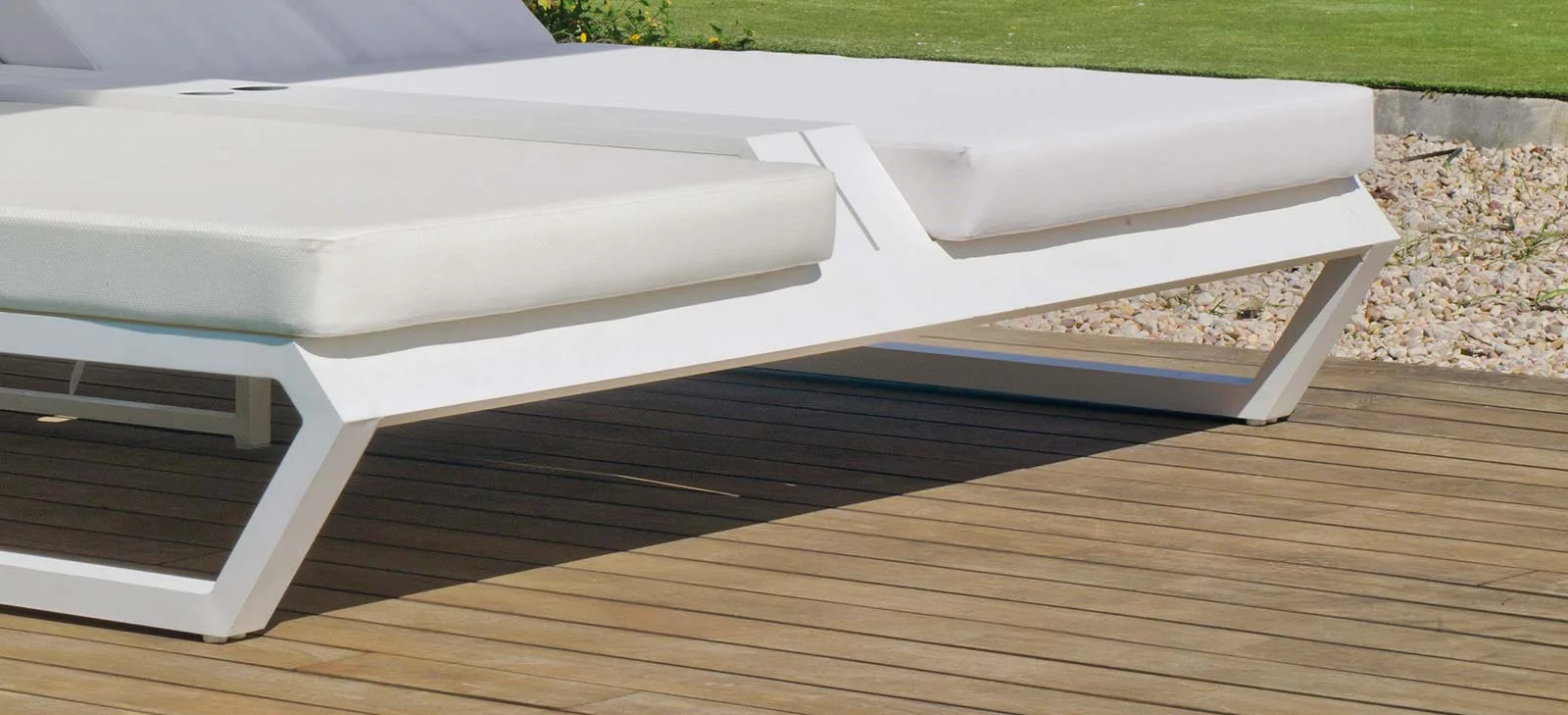 Nuestra cama balinesa doble, fabricada con un elegante aluminio color blanco, ofrece una combinación perfecta de estilo y confort gracias a sus respaldos multiposiciones independientes. Sus cojines de alta calidad Dralón garantizan una experiencia de descanso única. Este mueble no solo es un elemento de descanso, sino también una pieza decorativa que realza cualquier ambiente exterior o interior.