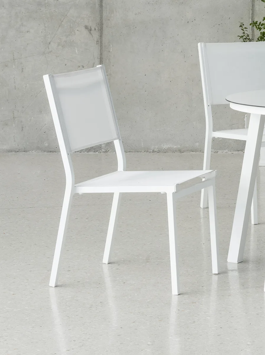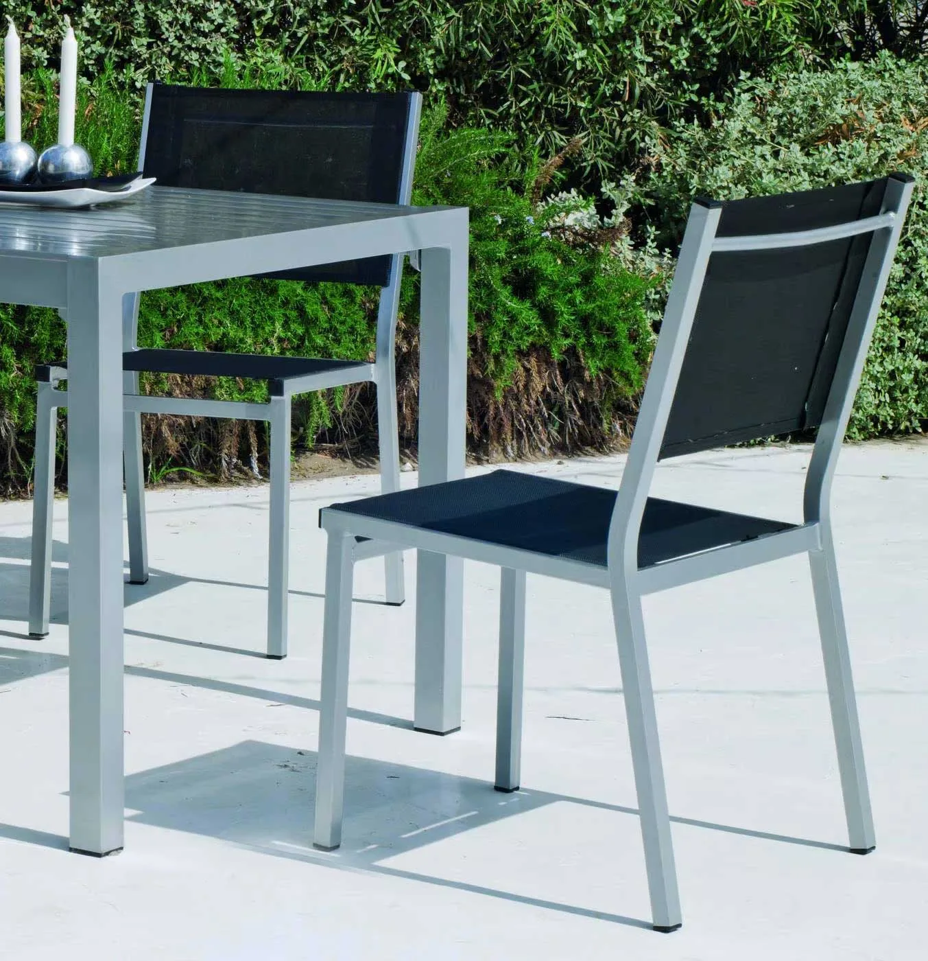 - 4 Sillas modelo Sión con asiento y respaldo de textilene. Dimensiones (Ancho-Fondo-Alto): 48 x 60 x 87 cm.