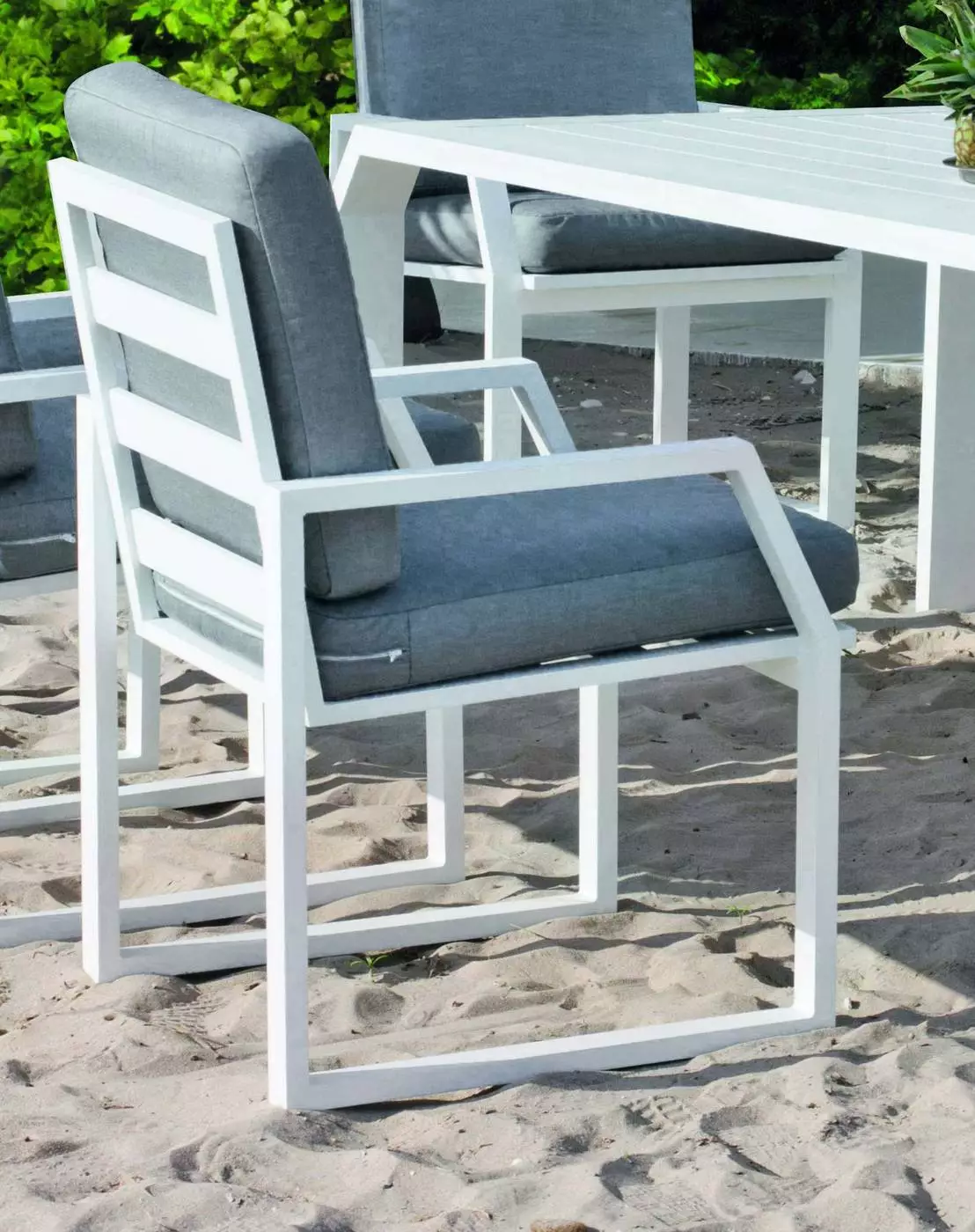 Hace unas semanas les compré un banco para la terraza y estoy muy contento con el resultado. El color blanco del aluminio se mantiene impecable incluso con el sol y la lluvia. Es robusto, muy cómodo (con el cojín queda ideal). Lo recomiendo por su calidad.