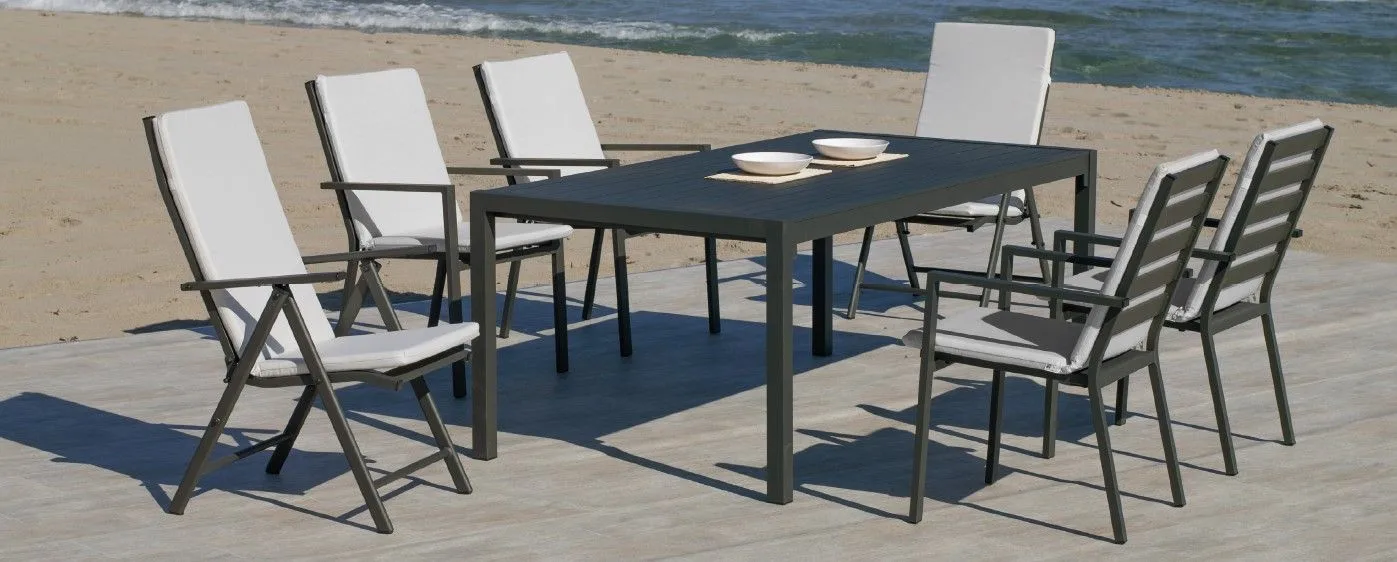 Transforma tu espacio exterior en un rincón de elegancia y comodidad con nuestro exclusivo conjunto de jardín con mesa y 6 sillas, 2 de ella reclinables. Diseñado meticulosamente para brindar una experiencia única en su jardín, terraza o patio, este conjunto fusiona la funcionalidad con la sofisticación, creando un ambiente que invita a disfrutar de cada momento al aire libre.