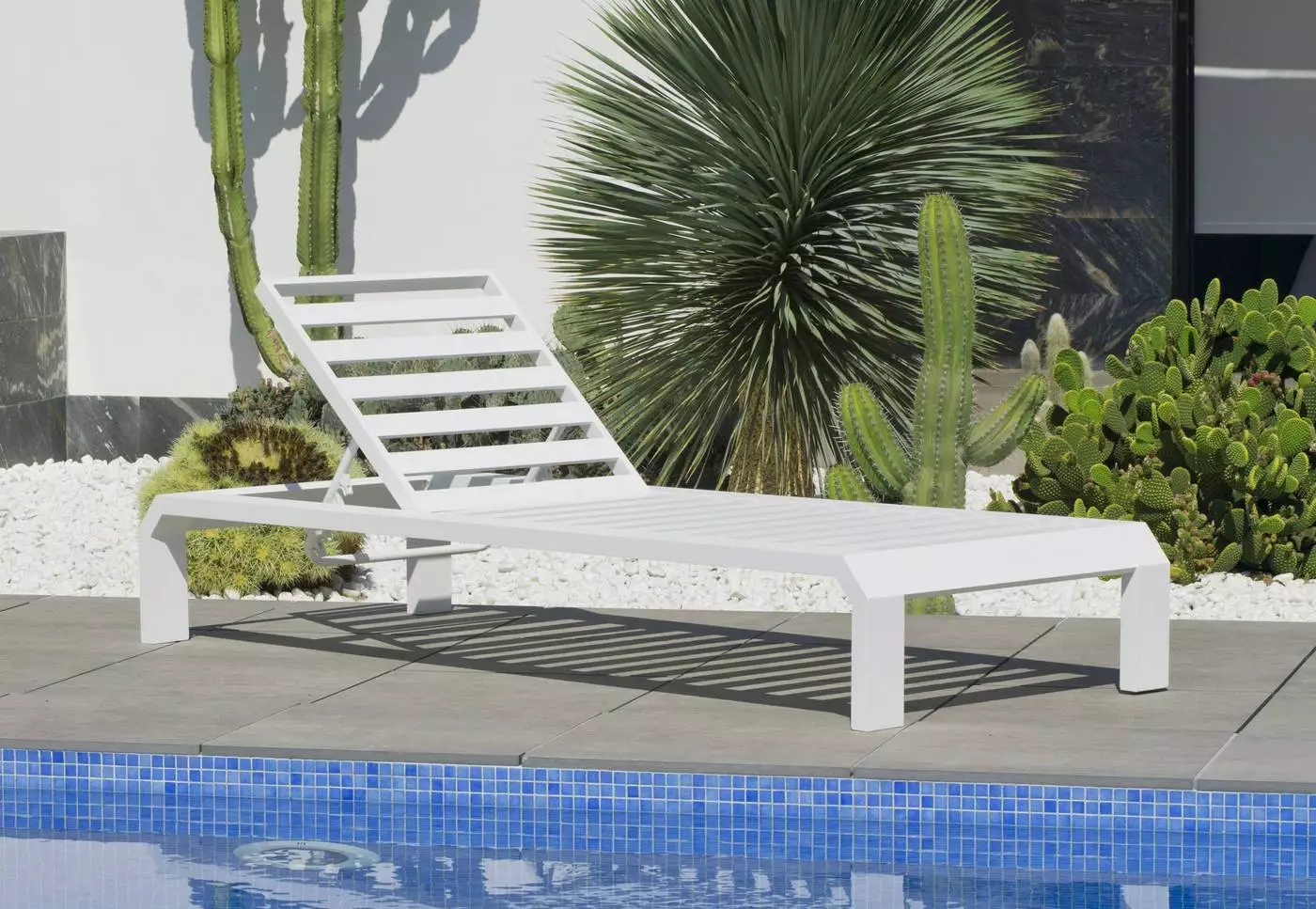 Este conjunto no solo es funcional, sino también un elemento decorativo que añade un toque de modernidad a tu espacio exterior. La mesa auxiliar cuadrada baja modelo Alba complementa a la perfección la tumbona, ofreciendo un lugar práctico para tus bebidas o aperitivos.