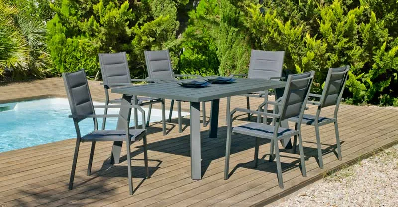 Los 6 sillones del conjunto están diseñados para brindarte la máxima comodidad mientras disfrutas de tu comida o simplemente te relajas al aire libre. Por otro lado, la mesa rectangular es lo suficientemente amplia para acomodar a todos tus invitados y proporcionar un espacio generoso para tus momentos de ocio.