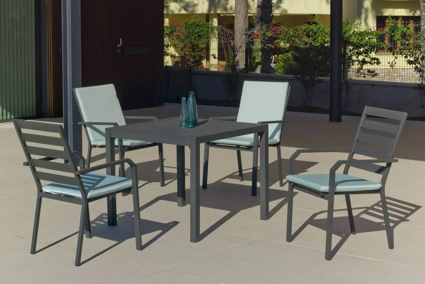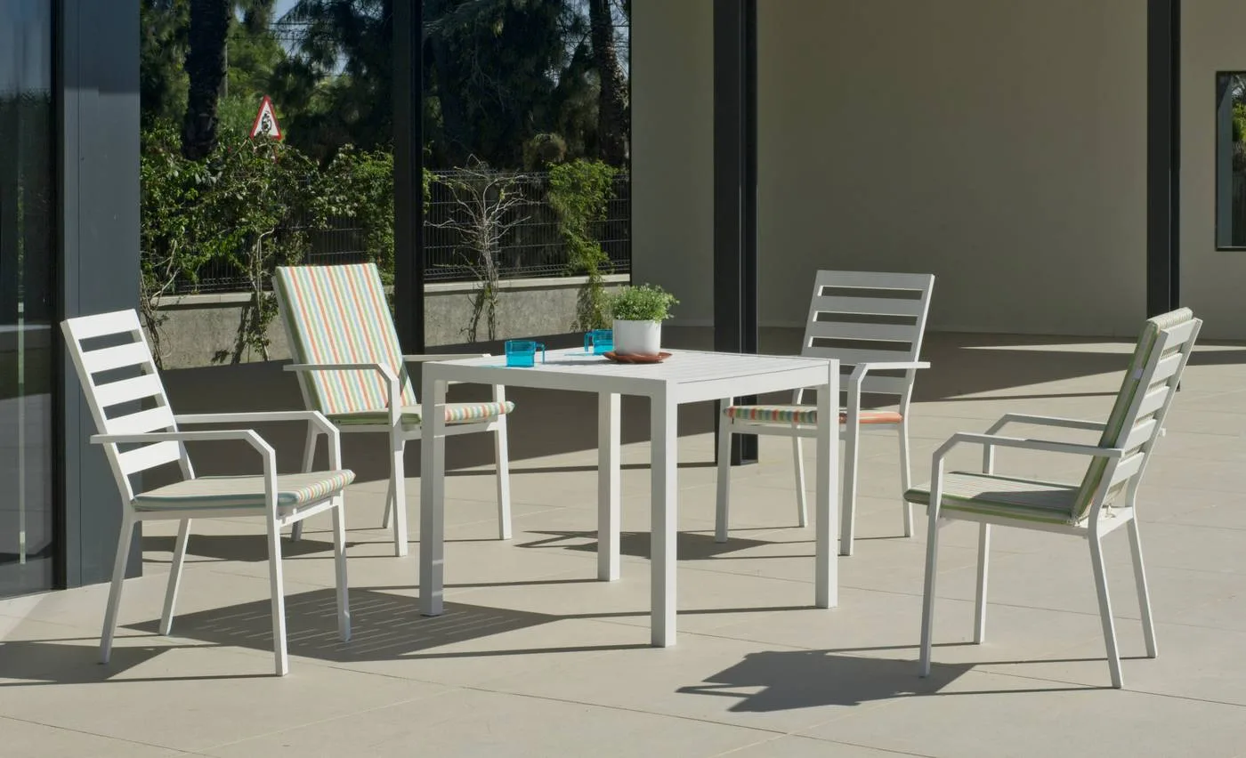 Conjunto de exterior de una mesa cuadrada con 4 sillas: conjunto Caravel 909