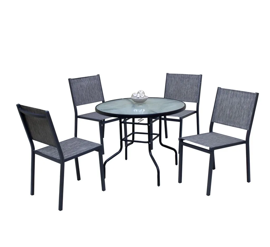 Conjunto de mesa y 4 sillas para exterior de acero Rodas
