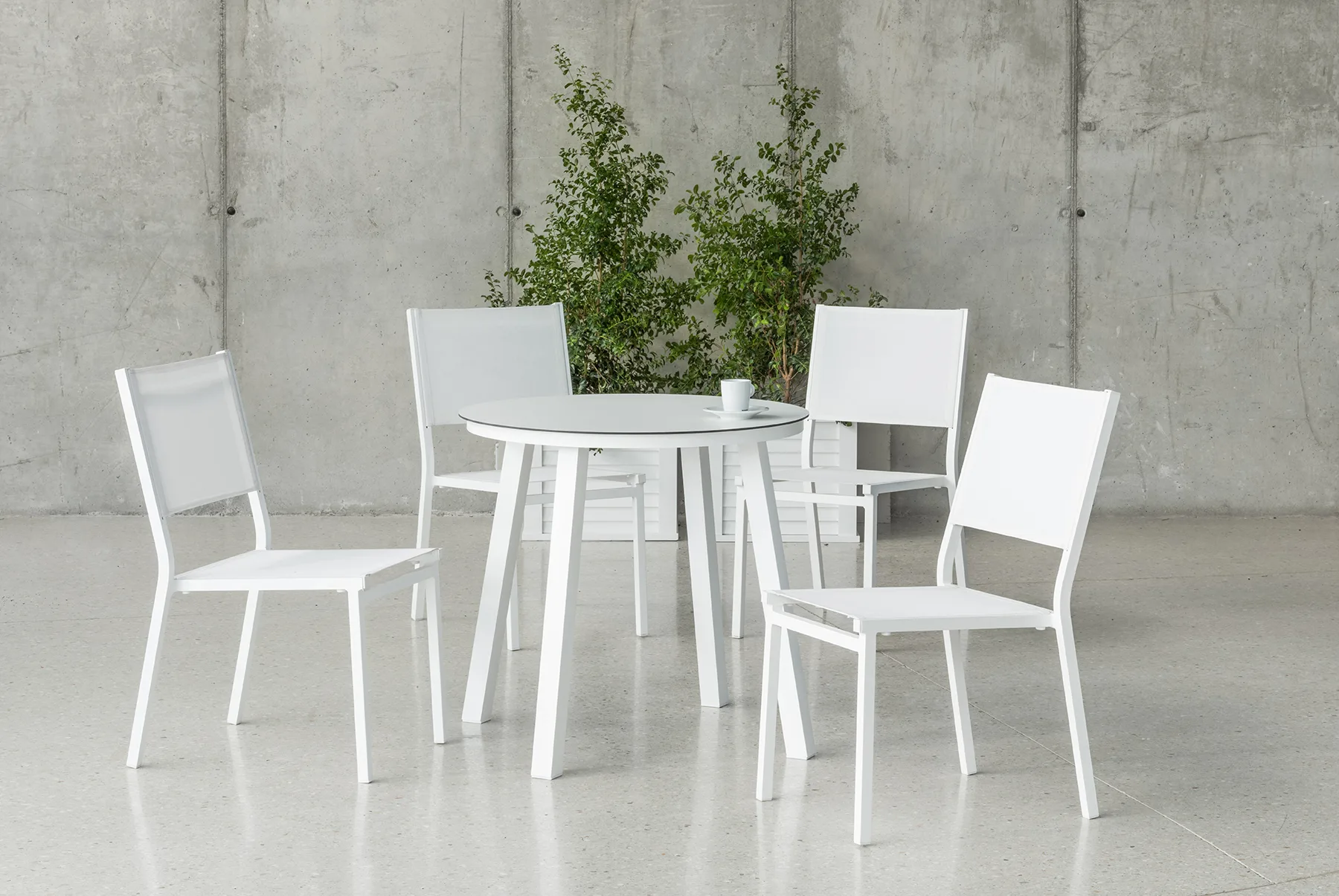- 4 Sillas modelo Sión con asiento y respaldo de textilene. Dimensiones (Ancho-Fondo-Alto): 48 x 60 x 87 cm.