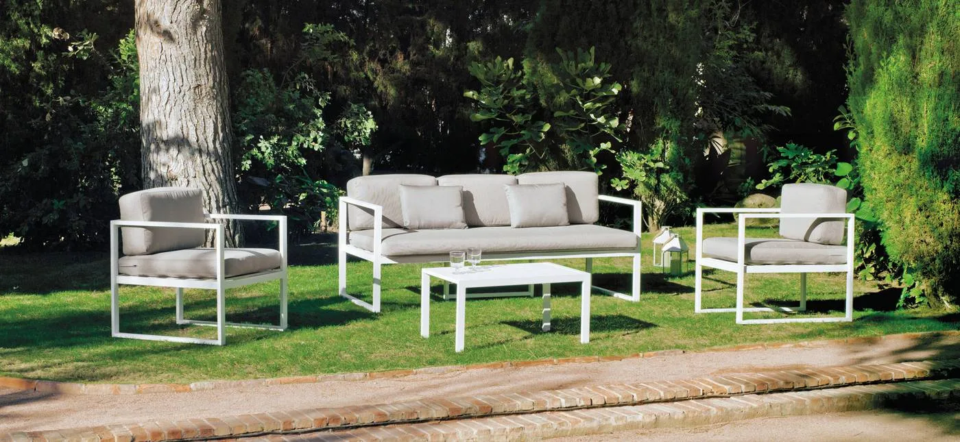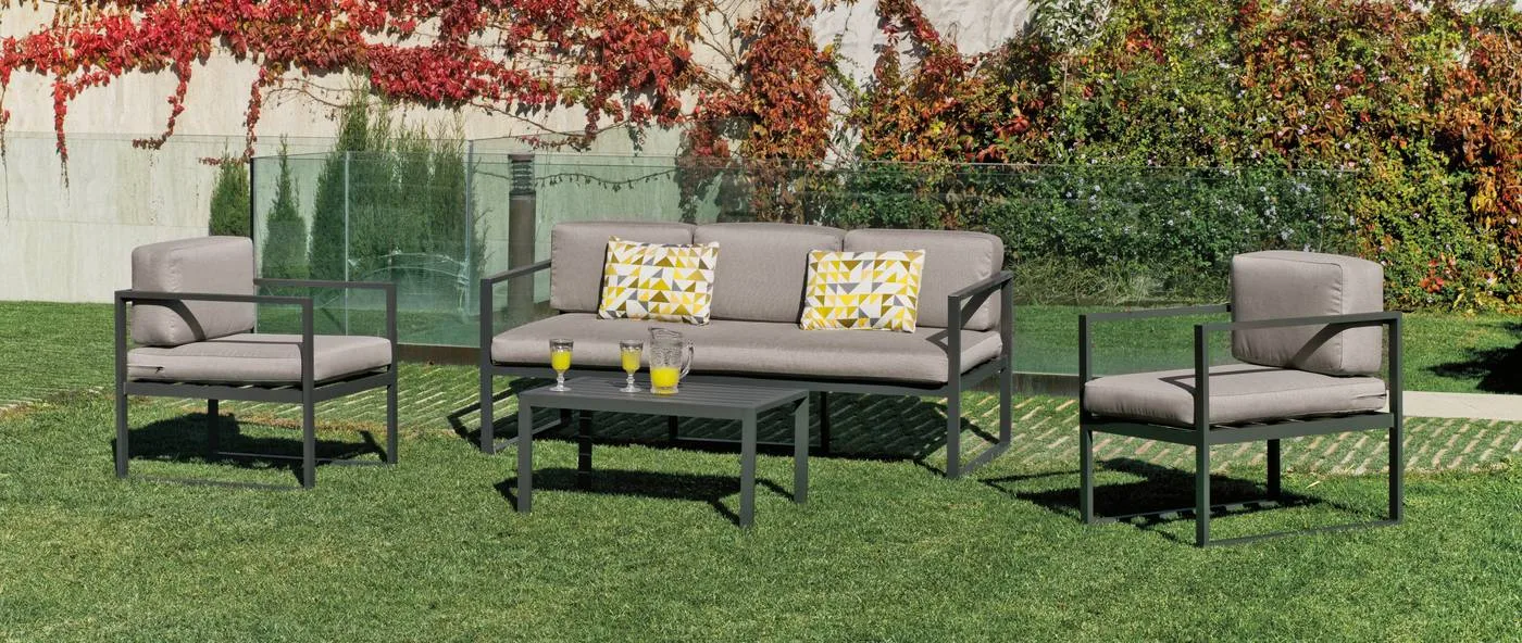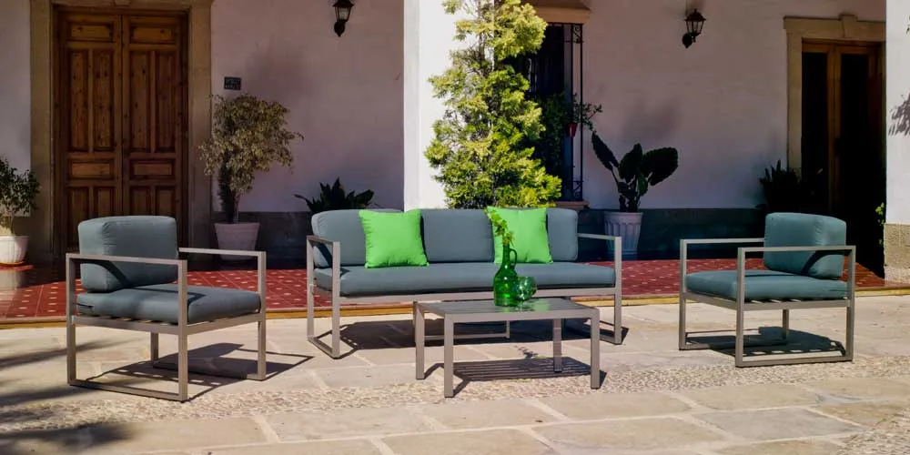 Fabricado en aluminio, este conjunto de muebles destaca por su resistencia a la intemperie y su durabilidad a lo largo del tiempo. Además, los cojines especiales para exterior son fáciles de limpiar y mantienen su aspecto impecable temporada tras temporada, garantizando una inversión duradera en mobiliario exterior.