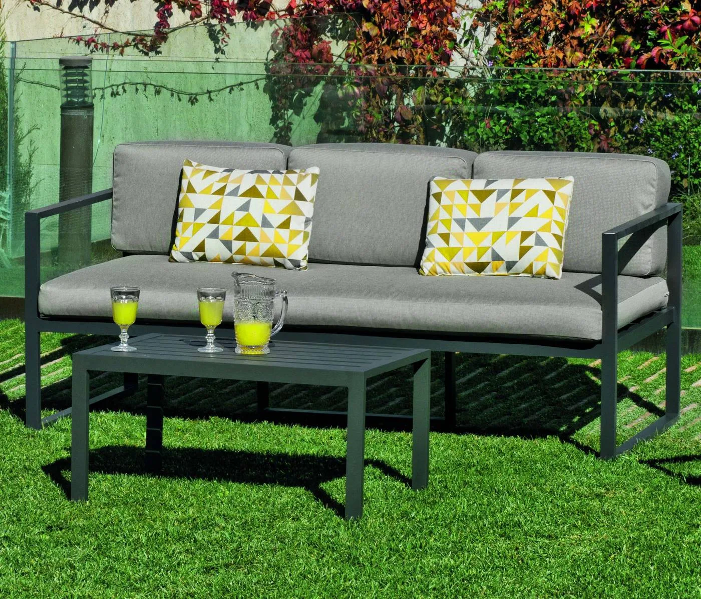 Este conjunto de muebles de exterior de aluminio combina elegancia y durabilidad para transformar tu espacio al aire libre en un oasis de confort y estilo. Con un sofá de 3 plazas, 2 sillones y una mesa auxiliar rectangular, este conjunto es la elección perfecta para disfrutar del aire libre con comodidad y estilo.