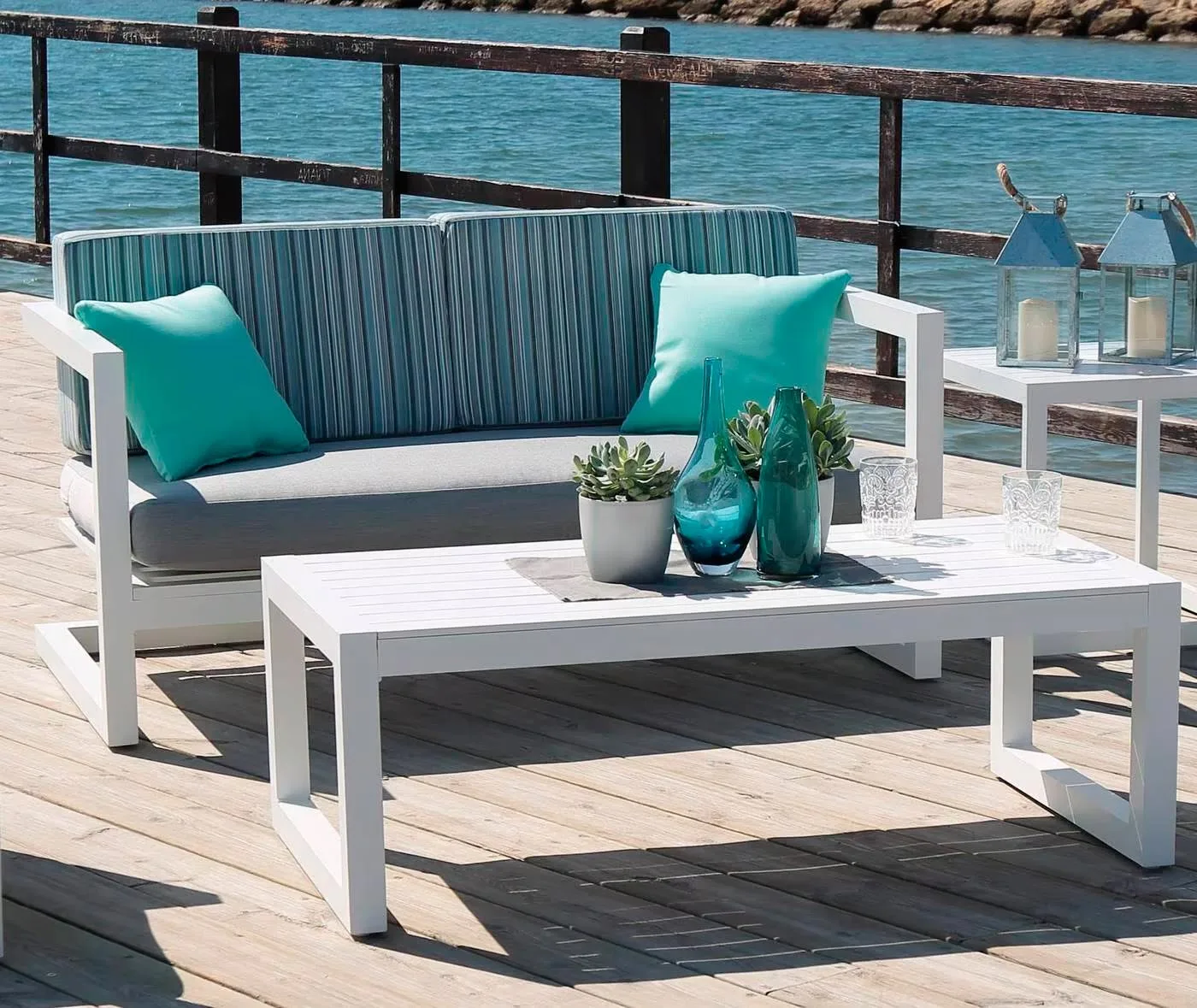 Con líneas limpias y una estética minimalista, este conjunto de terraza de aluminio está diseñado para capturar la esencia de la sofisticación contemporánea. Su acabado en aluminio pulido, junto con los cojines de color neutro, se integra armoniosamente en cualquier configuración al aire libre, desde jardines modernos hasta patios tradicionales, aportando un toque de modernidad y clase.