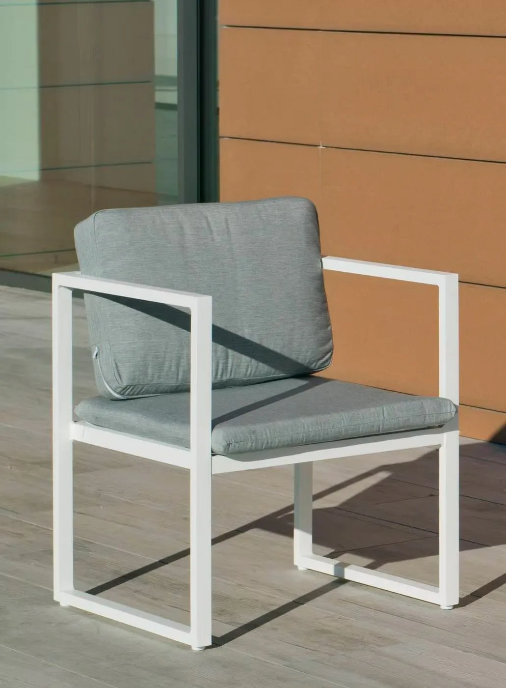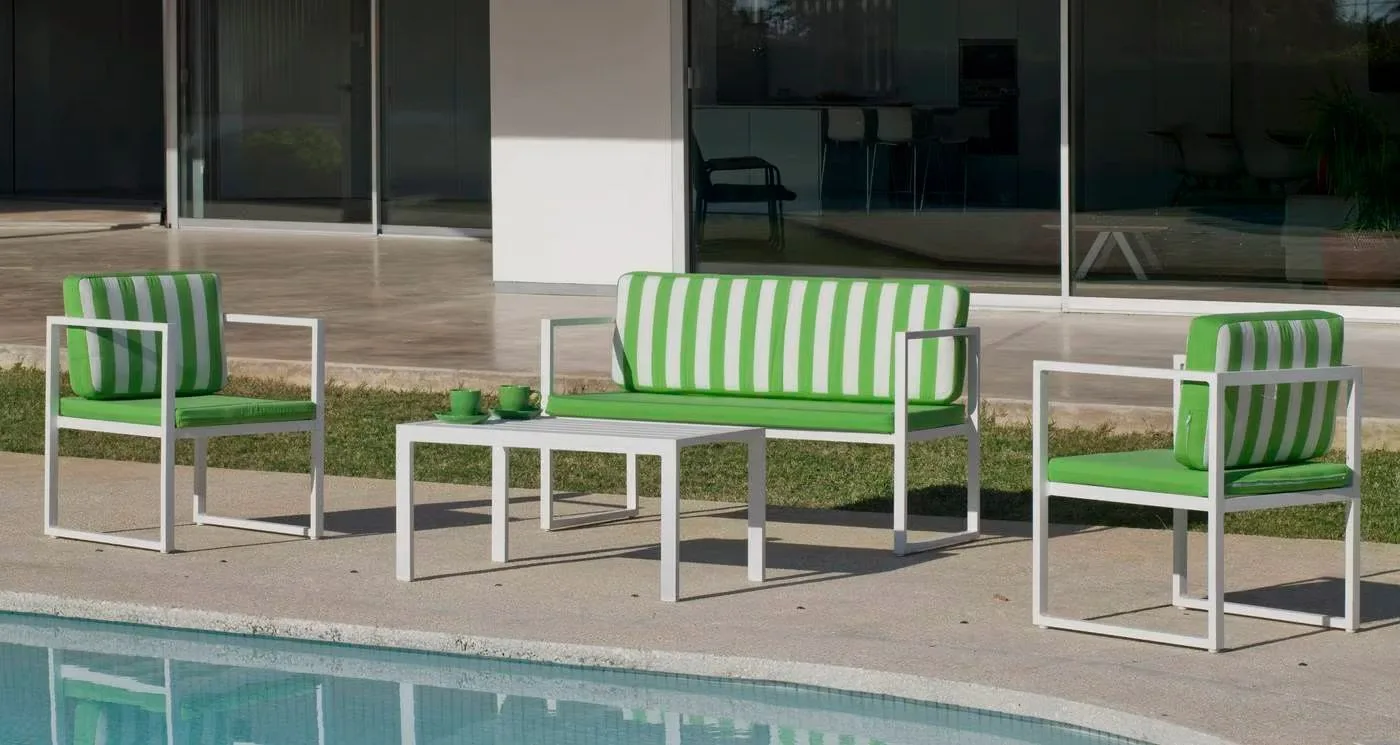 Nuestro conjunto de muebles de jardín de aluminio está diseñado para resistir cualquier clima. La estructura de aluminio es resistente a la oxidación y la corrosión, mientras que los cojines son resistentes al agua. Esto significa que puede disfrutar de su conjunto sin importar las condiciones climáticas. ¿Llueve? No hay problema. ¿Hace mucho sol? ¡No hay problema tampoco!