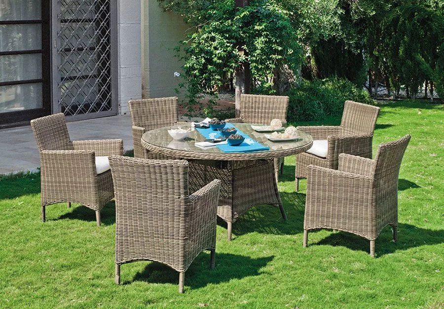 Conjunto jardín mesa redonda y 6 sillones ratán Borsalino