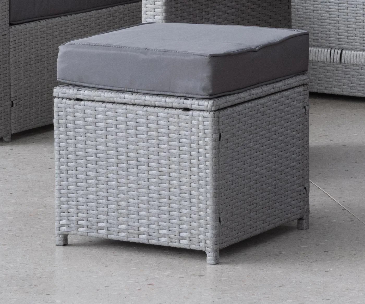 - 2 Reposapiés, con cojines desenfundables. Dimensiones (Ancho-Fondo-Alto): 45 x 45 x 38 cm.