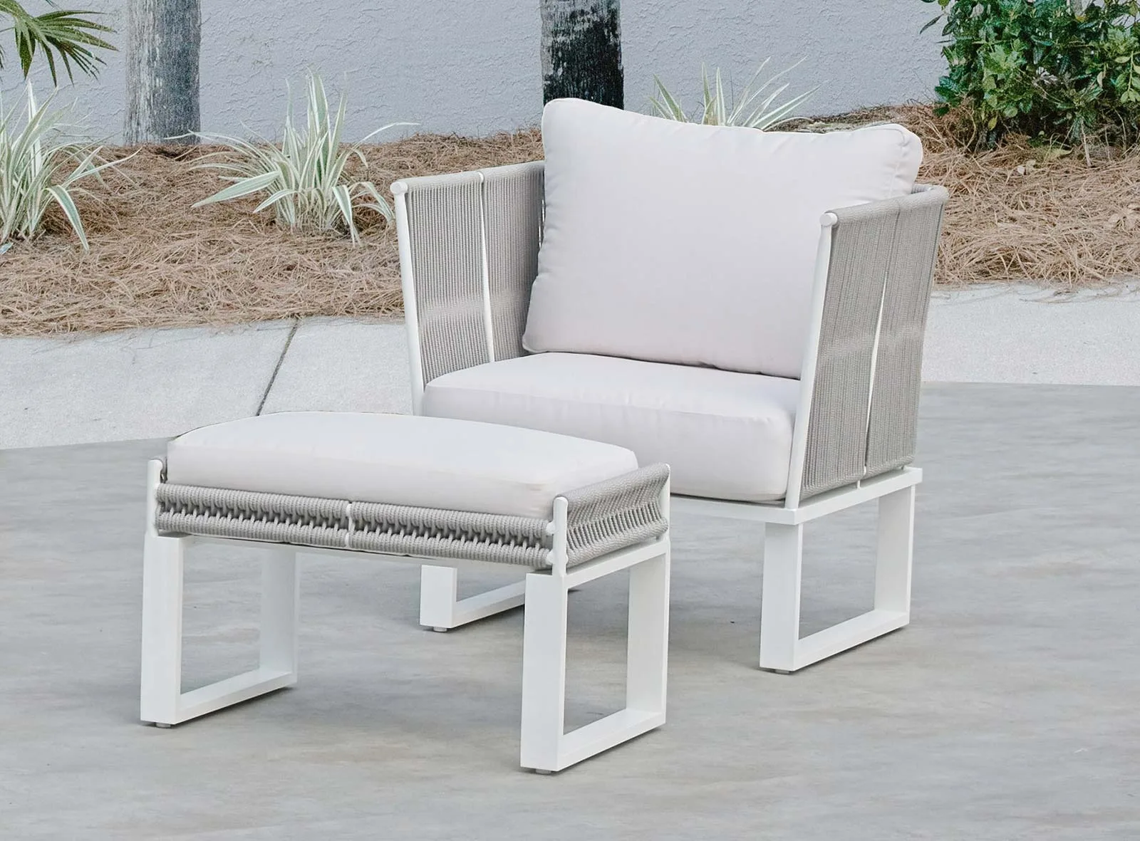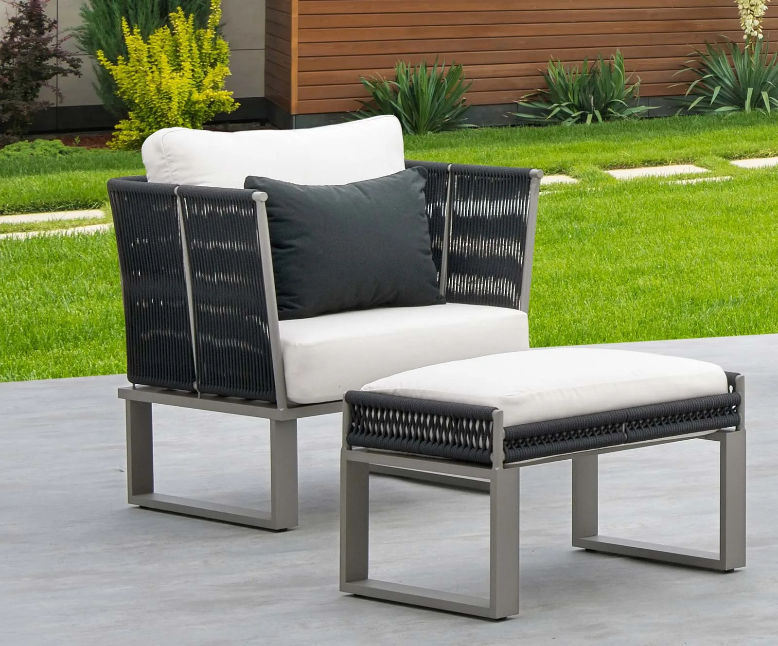 En este exclusivo conjunto de sofá de cuerda eleva la fusión entre estética y funcionalidad redefine el lujo al aire libre. La cuerda redonda trenzada, cuidadosamente seleccionada, aporta un toque artesanal y una resistencia excepcional. La estructura de aluminio de alta calidad garantiza durabilidad y estabilidad, brindando un diseño elegante que eleva la estética de tu espacio exterior.