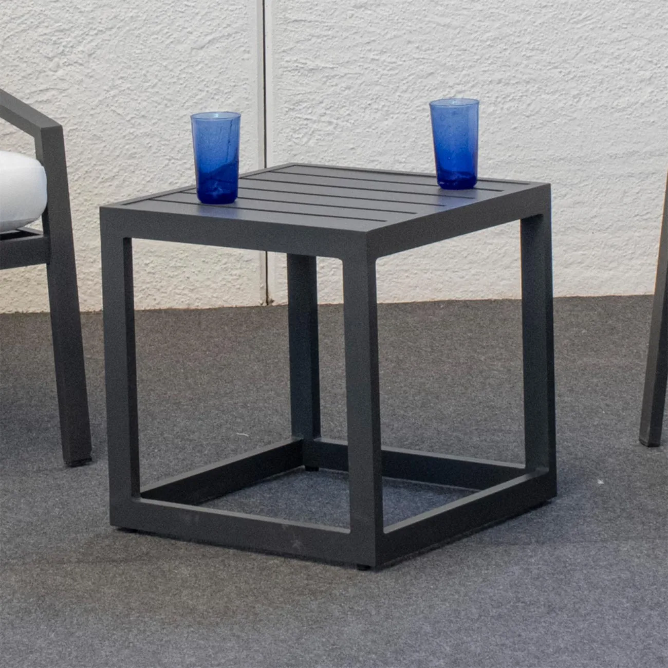 - 1 Mesa de centro de aluminio Alba. Dimensiones (Ancho-Fondo-Alto): 45 x 45 x 45 cm.