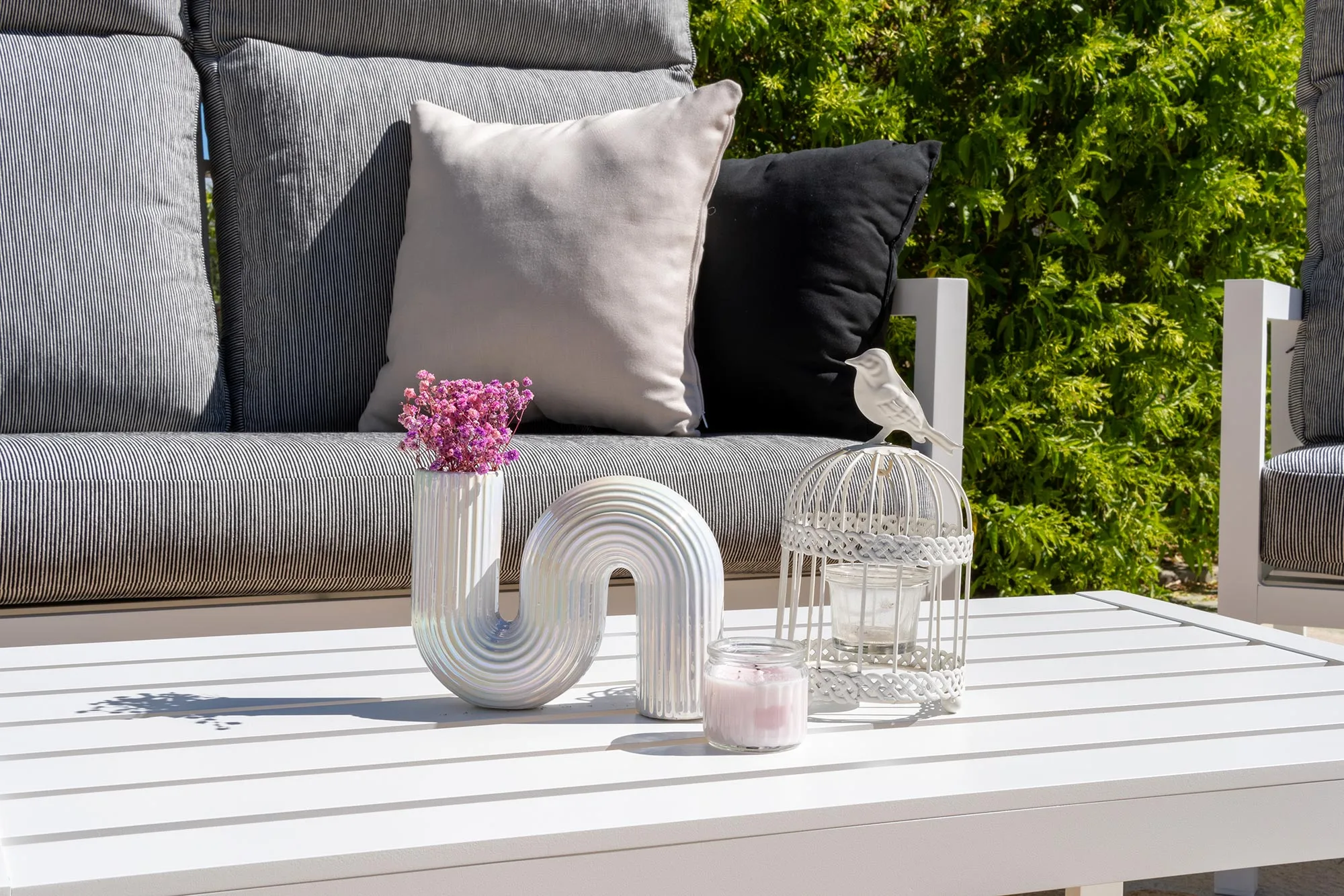 Descubre la elegancia del aluminio en su máxima expresión. Esta mesa auxiliar de aluminio de alta calidad no solo es hermosa, sino también extremadamente duradera. Su acabado resistente a la intemperie y a los rayos UV garantiza que lucirá impecable temporada tras temporada. Perfecta para crear un ambiente sofisticado en tu jardín, terraza o patio.