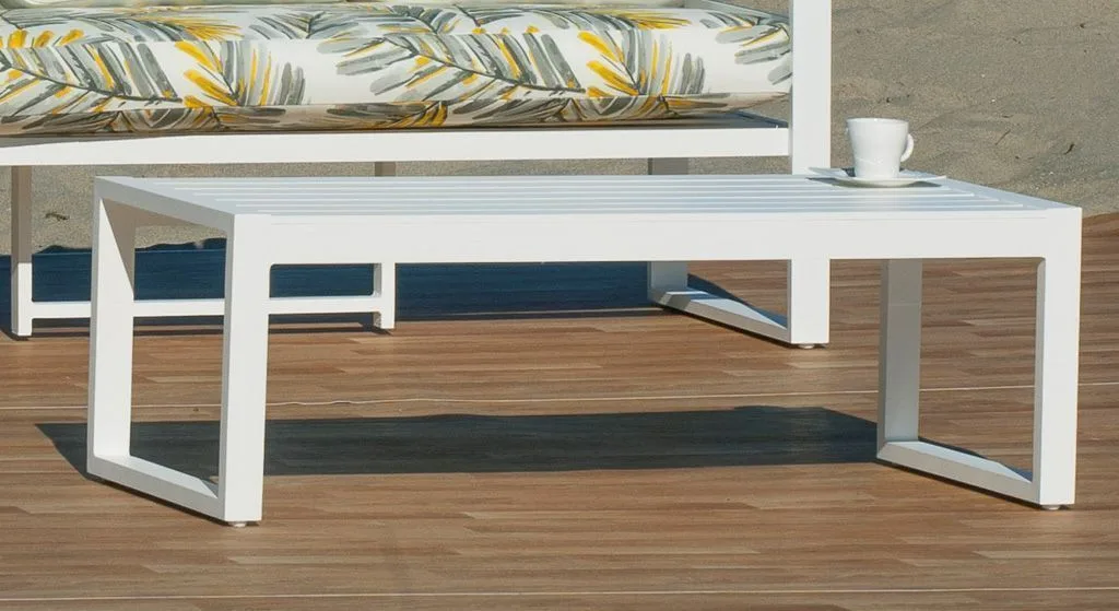 Mesa baja de jardín blanca Piave con estructura de aluminio reforzada y ligera.