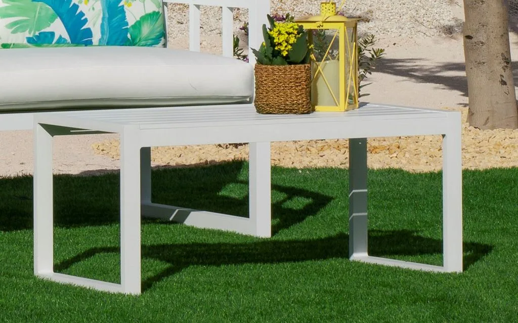 Mesa de centro para jardín Altiana con estructura de aluminio reforzada y ligera, con acabados en color blanco o gris antracita.
