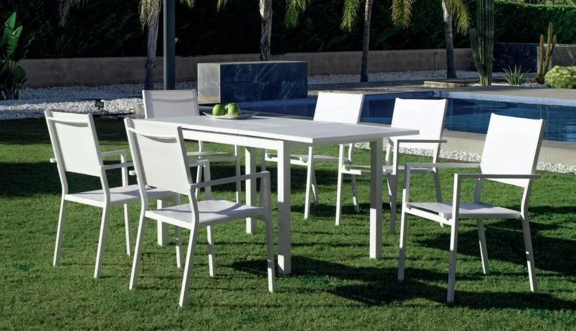 Su limpio y original diseño, otorgan a esta mesa de comedor modernidad y elegancia. Diseñada para soportar las condiciones adversas como el sol y la lluvia, así como los rigores del uso diario. Fabricamos la estructura en cuatro colores distintos; champagne, plata, blanco y gris antracita y en varias dimensiones. ¡Así que elige el color de mesa de jardín extensible de aluminio que más te guste!