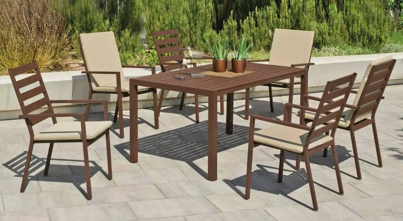 Esta elegante mesa de comedor para jardín fabricada en aluminio Palma, te ofrecerá un lugar relajado y cómodo en tu jardín para que puedas disfrutar del tiempo libre con tu familia y amigos.