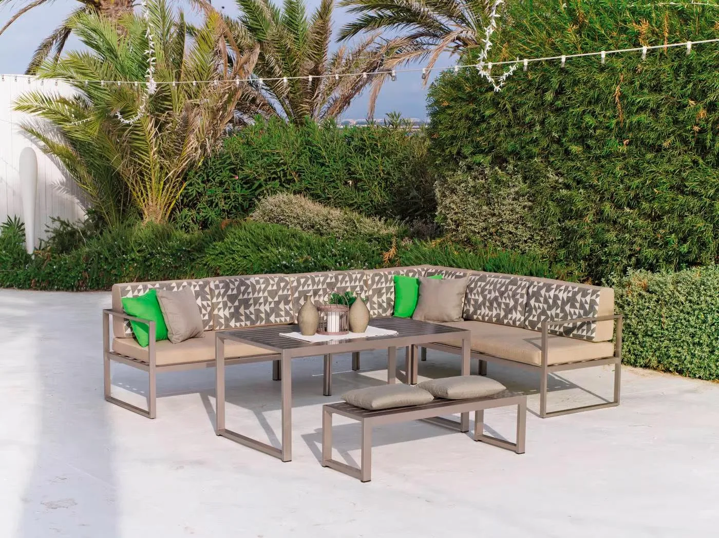 Encantada con la compra. Compré el sofá y la butaca de jardín Azores en champagne y la tapicería Molise beige y el resultado ha sido mejor de lo esperado. Los acabados son estupendos, la calidad del armazón parece fuerte y la tela me ha encantado. Otro detalle es cómodo de desenfundar. Me parece cómodo y bonito. Para el espacio que tengo la medida es perfecta. La entrega ha sido en fecha y venía muy bien embalado. Un gran acierto el haber comprado en Malibú Garden. 100% recomendable.