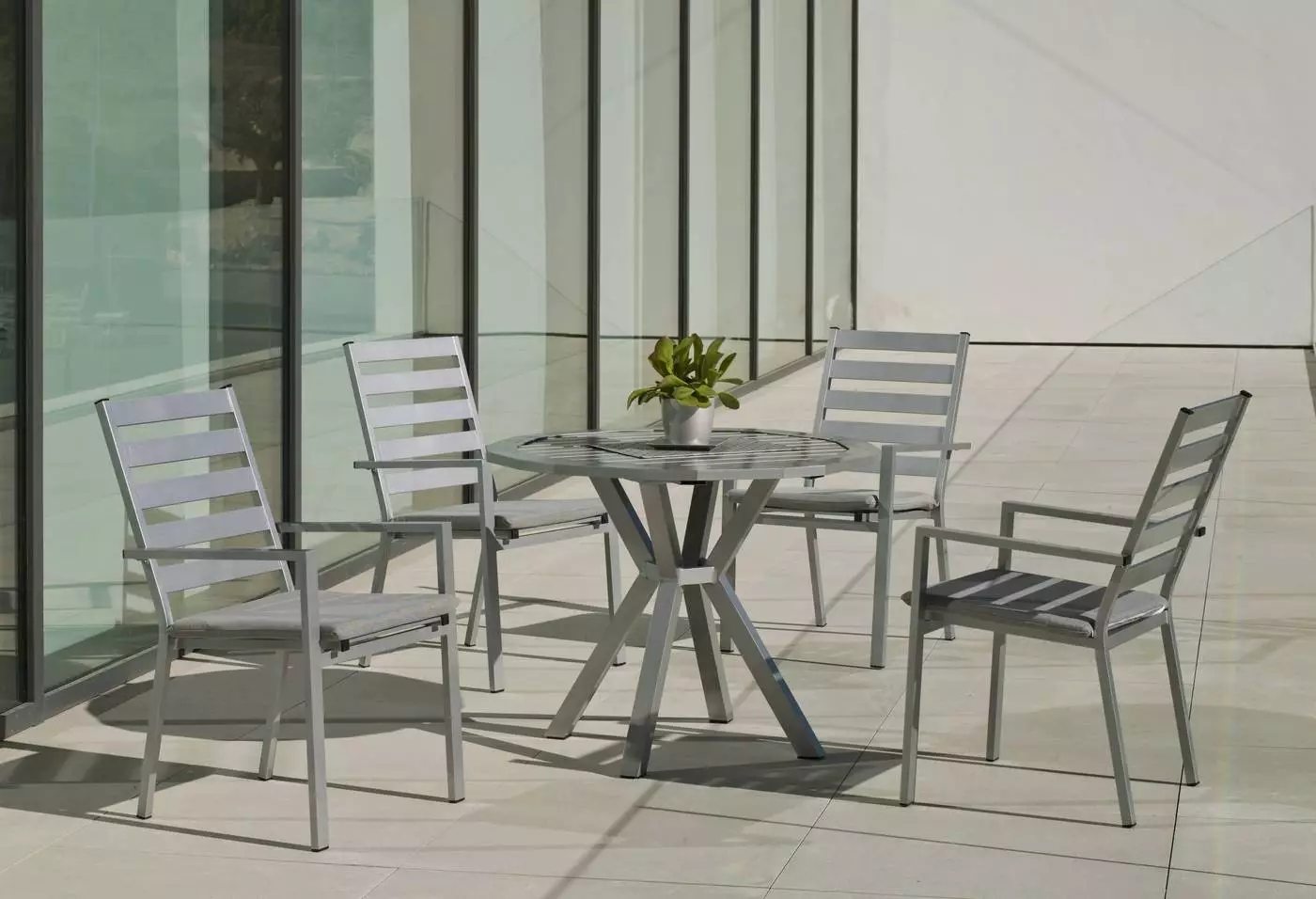 Hace unas semanas les compré un banco para la terraza y estoy muy contento con el resultado. El color blanco del aluminio se mantiene impecable incluso con el sol y la lluvia. Es robusto, muy cómodo (con el cojín queda ideal). Lo recomiendo por su calidad.