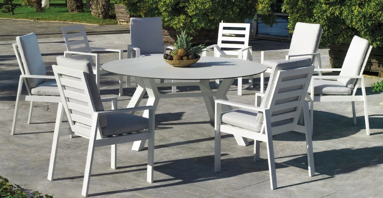 Nuestra mesa de jardín redonda para 8 personas está fabricada en aluminio y con tablero HPL es una opción perfecta para aquellos que buscan un mueble elegante, duradero y funcional. Nuestra mesa redonda para 8 personasdestaca por su estilo moderno y sofisticado.