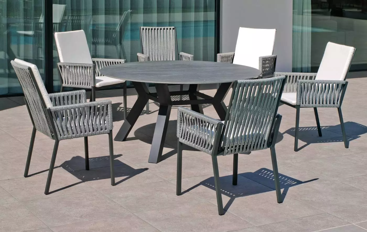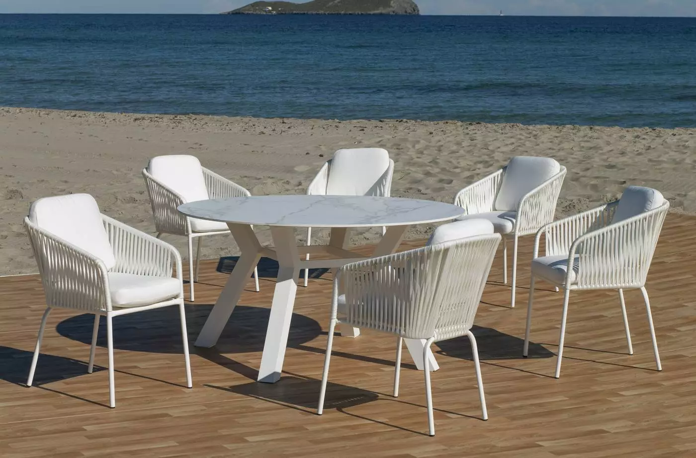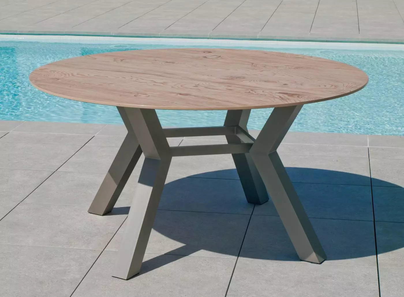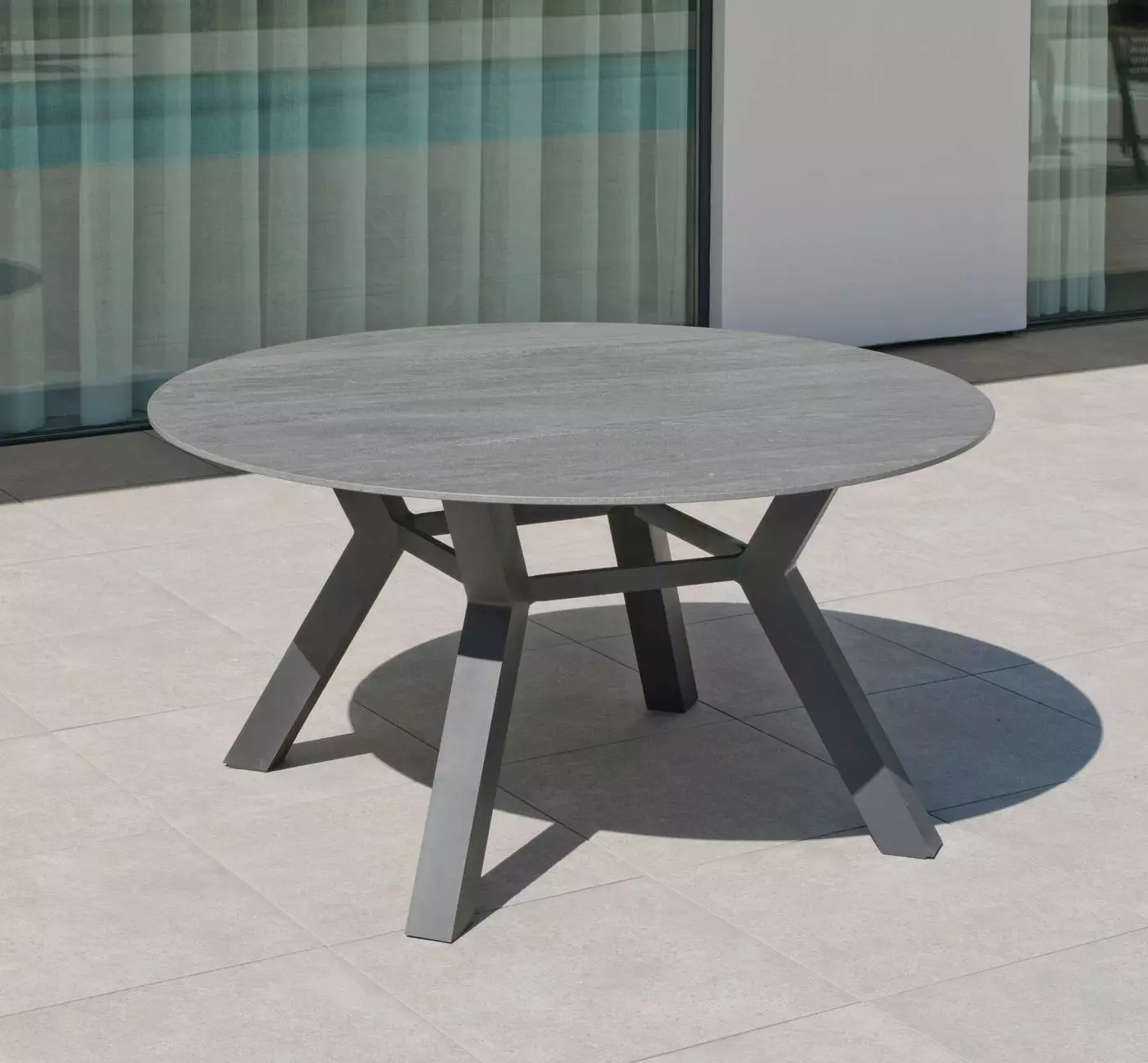 Mesa redonda aluminio y tablero de Neolith modelo Veneto