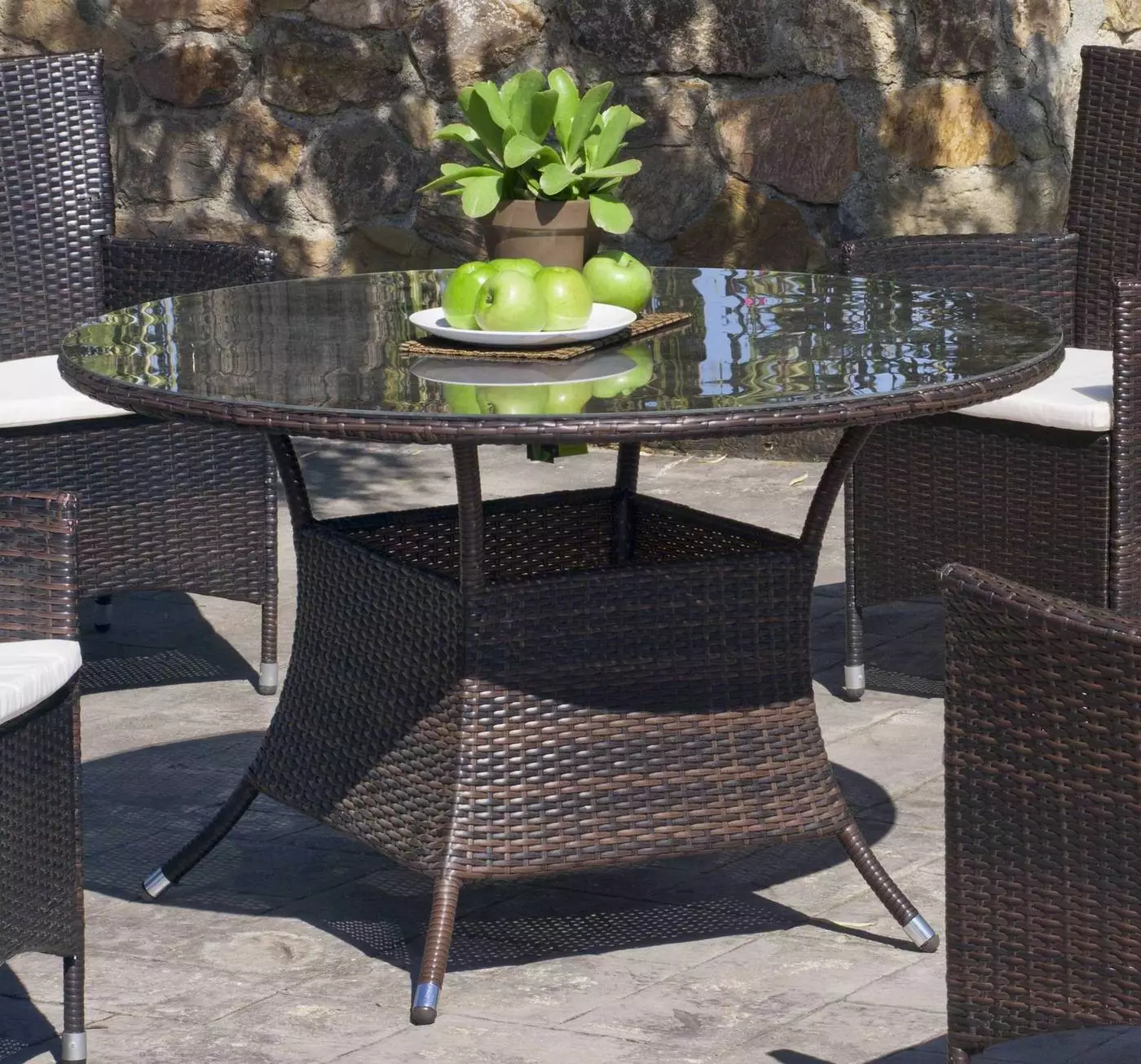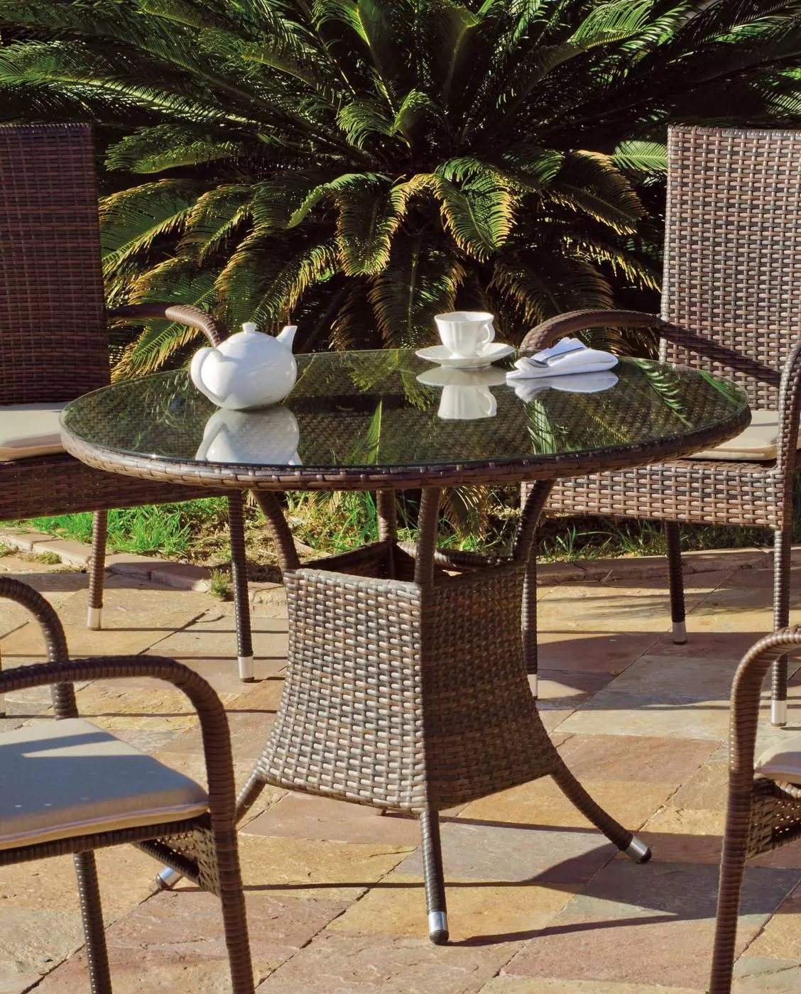 ¿Te gusta comer o cenar al aire libre? Nuestra mesa redonda de jardín fabricada en ratán marrón será la opción perfecta, ya que está fabricada para soportar las condiciones adversas como el sol y la lluvia, así como los rigores del uso diario, idónea para jardín o terraza. Fabricamos este modelo de mesa redonda de exterior en 90 cm