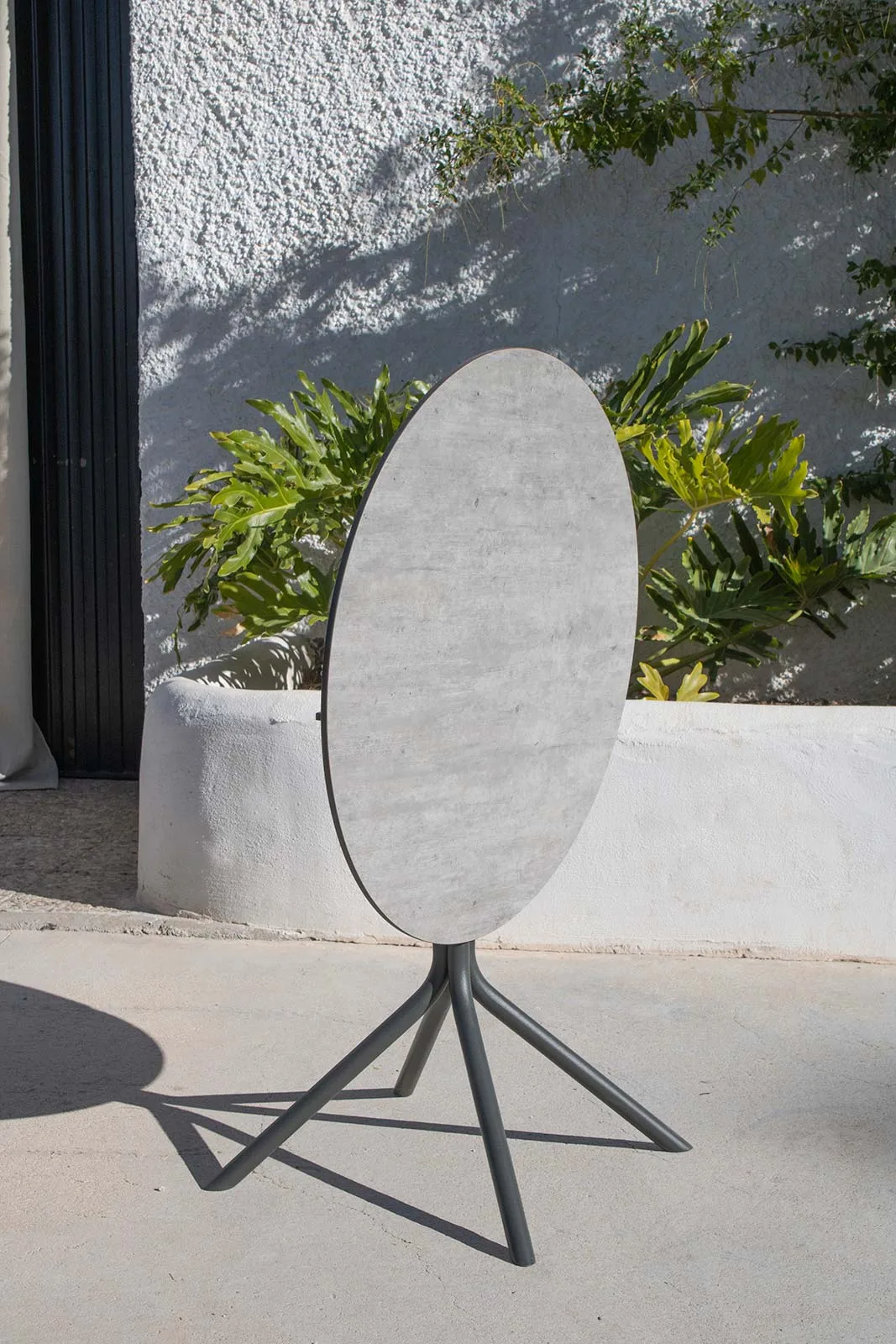 Diseñada para soportar las condiciones exteriores más exigentes, esta mesa cuenta con una estructura de aluminio que no solo es ligera y fácil de manejar, sino también resistente a la corrosión. La tapa de HPL ofrece una superficie duradera que resiste arañazos, manchas y los efectos del sol.