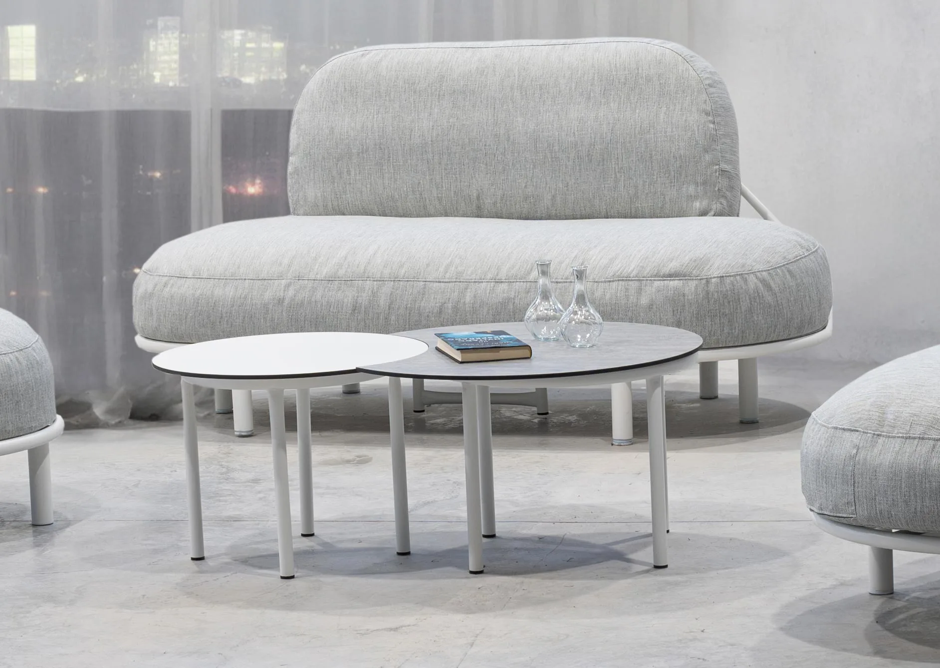 Si buscas un complemento perfecto para tu sala de estar, este set de mesas de café nido en aluminio con tapa de HPL (High Pressure Laminate) es la elección ideal. Con un diseño moderno y funcional, estas mesas no solo añaden un toque de elegancia a tu espacio, sino que también ofrecen una solución práctica para organizar tus objetos diarios. Disponibles en dos tamaños; 60 y 80 cm de diámetro, este set te permite adaptarlas a cualquier distribución de tu hogar.