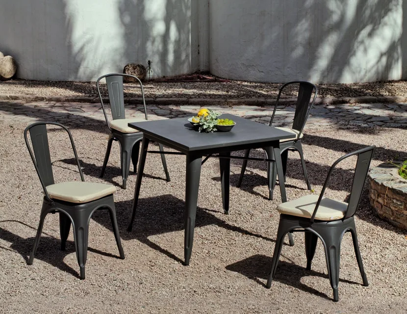 Descubre la perfecta armonía entre funcionalidad y estilo con nuestra mesa cuadrada inspirada en el diseño de la icónica mesa Tolix de Xavier Pauchard.