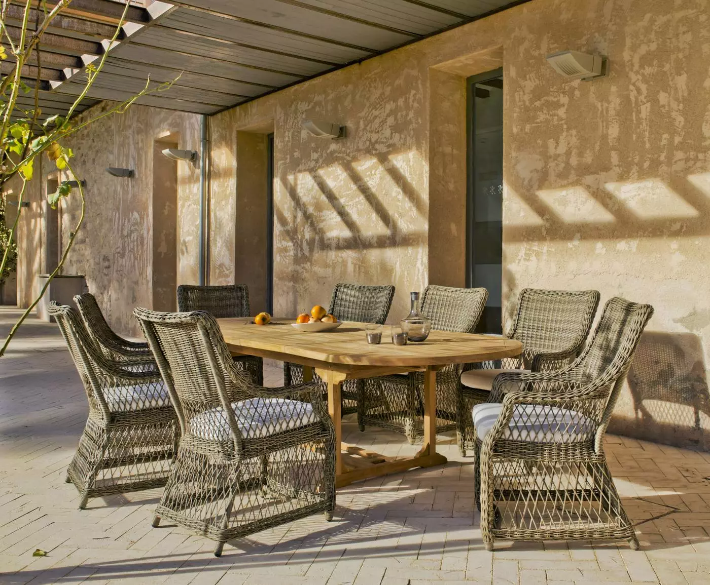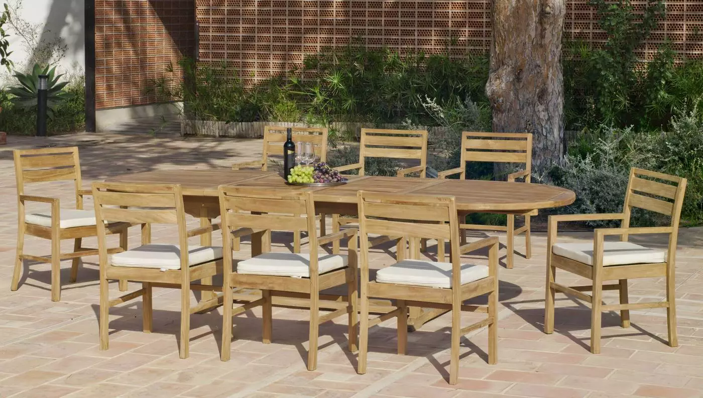 La madera de teka es conocida por su excepcional robustez y resistencia a la intemperie, lo que la convierte en la más adecuada para muebles de jardín que cualquier otro tipo de madera.