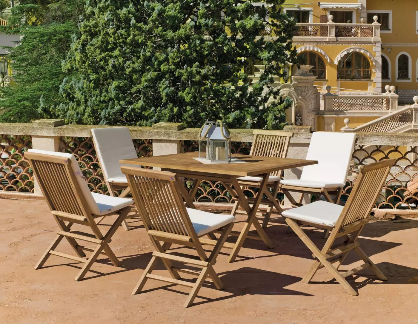 *Sillas no incluidas. El modelo que aparece en la foto es la tumbona Seroni, también fabricada en madera de teka.