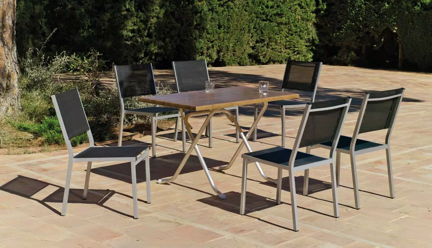 Disfruta de la comodidad de un mantenimiento mínimo con nuestra mesa rectangular pata plegable. El tablero Werzalit es fácil de limpiar con un paño húmedo, lo que te permite mantenerlo impecable con poco esfuerzo. Además, el aluminio no requiere ningún tratamiento especial para mantener su brillo original, lo que significa que pasarás menos tiempo preocupándote por el mantenimiento y más tiempo disfrutando de tu mesa.