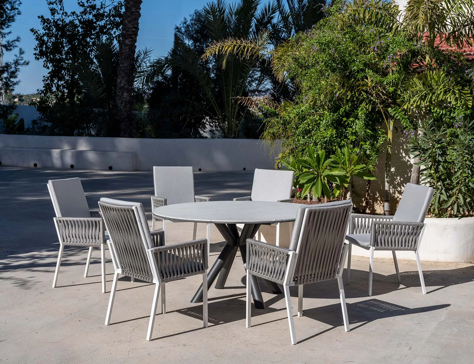 Sumérgete en el mundo del diseño vanguardista con nuestra mesa de jardín redonda para 8 personas, destacando una estructura de aluminio de alta calidad. Este material no solo aporta un aspecto moderno y elegante, sino que también garantiza durabilidad y resistencia. Descubre cómo la combinación de forma y función redefine tu entorno.