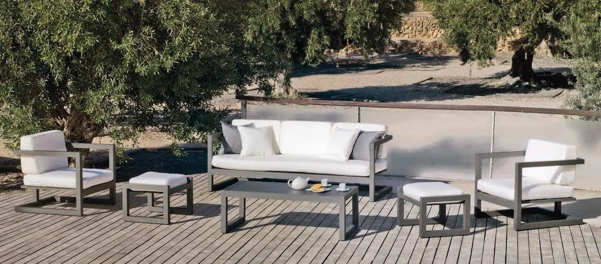 Convierte tu terraza en un oasis moderno con este conjunto de muebles de diseño contemporáneo. Crea un ambiente acogedor y elegante que refleje tu estilo personal y convierta tu espacio exterior en un lugar perfecto para relajarte y disfrutar.