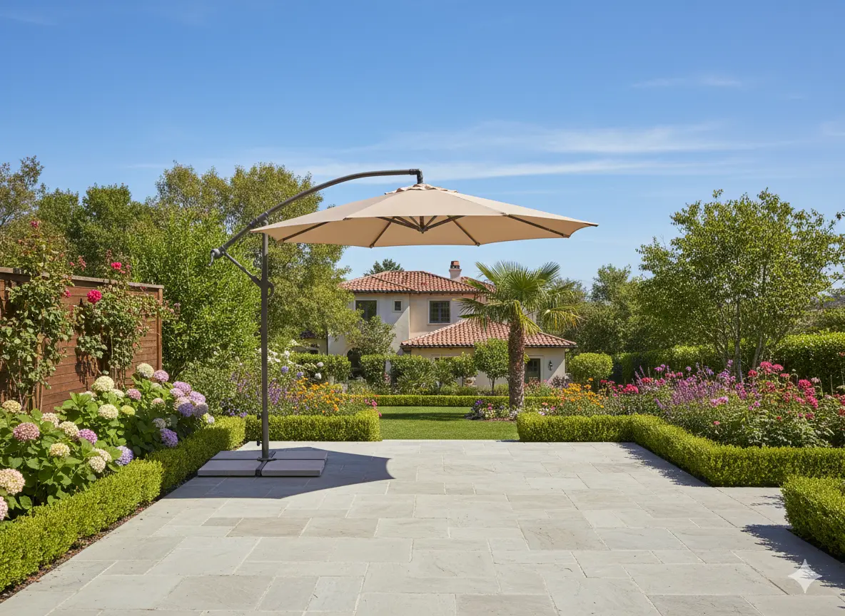 Este parasol excéntrico es plegable y compacto, lo que facilita su transporte y almacenamiento. Puedes resguardarlo nuestra funda protectora para parasol cuando no lo estés utilizando.