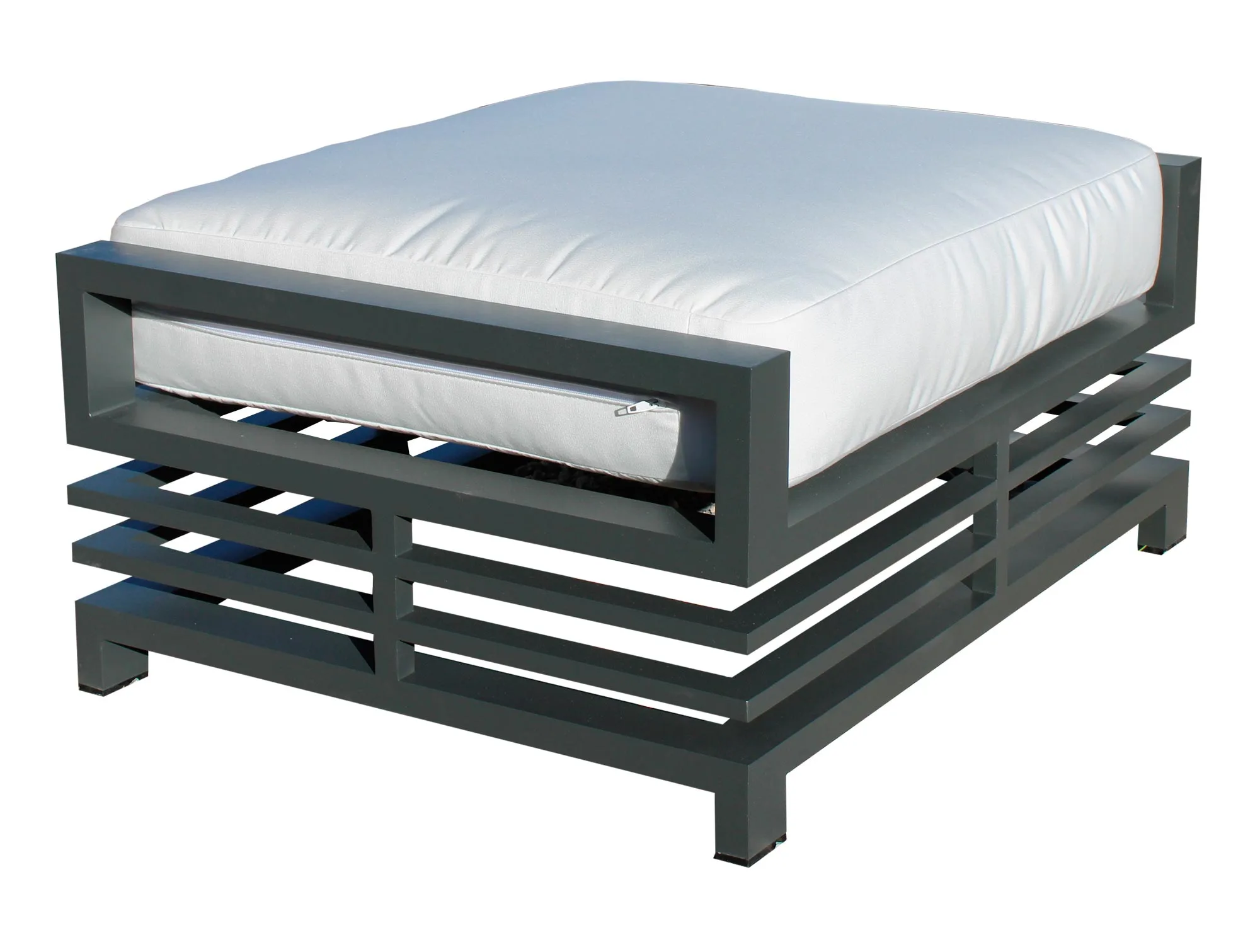 Si ya tienes en tu poder el resto del mobiliario de la Colección Grinvil, ahora puedes seguir con el mismo diseño en colores y materiales que tus sofás exteriores o crear una nueva mezcla exclusiva para este reposapiés para jardines de aluminio.