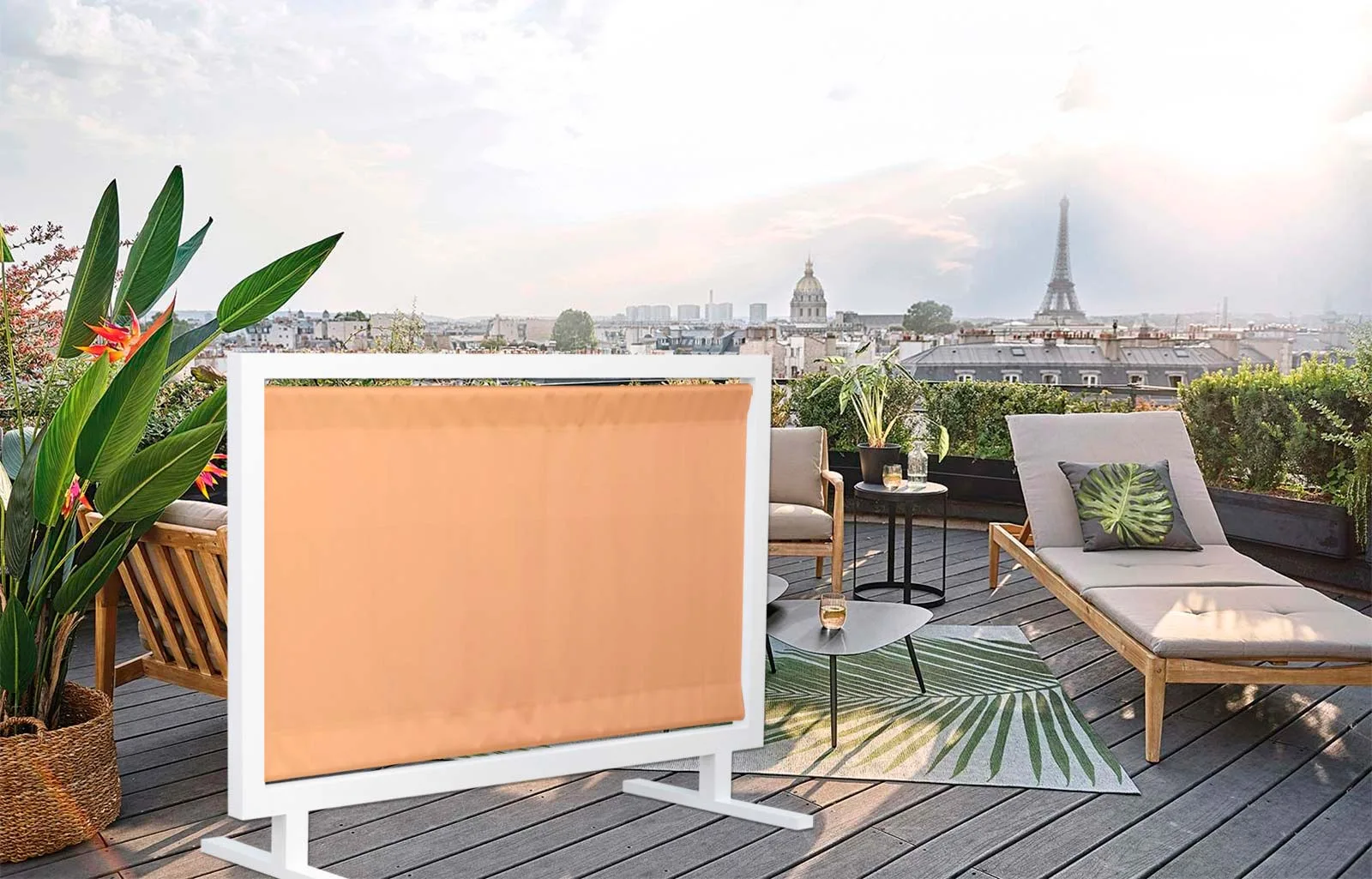 Este separador de ambientes de aluminio está construido para resistir las inclemencias del tiempo. El aluminio, conocido por su ligereza y resistencia a la corrosión, garantiza una larga vida útil del producto, mientras que el textilene, un tejido sintético de alta resistencia, ofrece una excelente resistencia al sol y la humedad. Este conjunto asegura que el separador mantenga su aspecto y funcionalidad a lo largo de las estaciones, convirtiéndolo en una inversión duradera para su hogar.