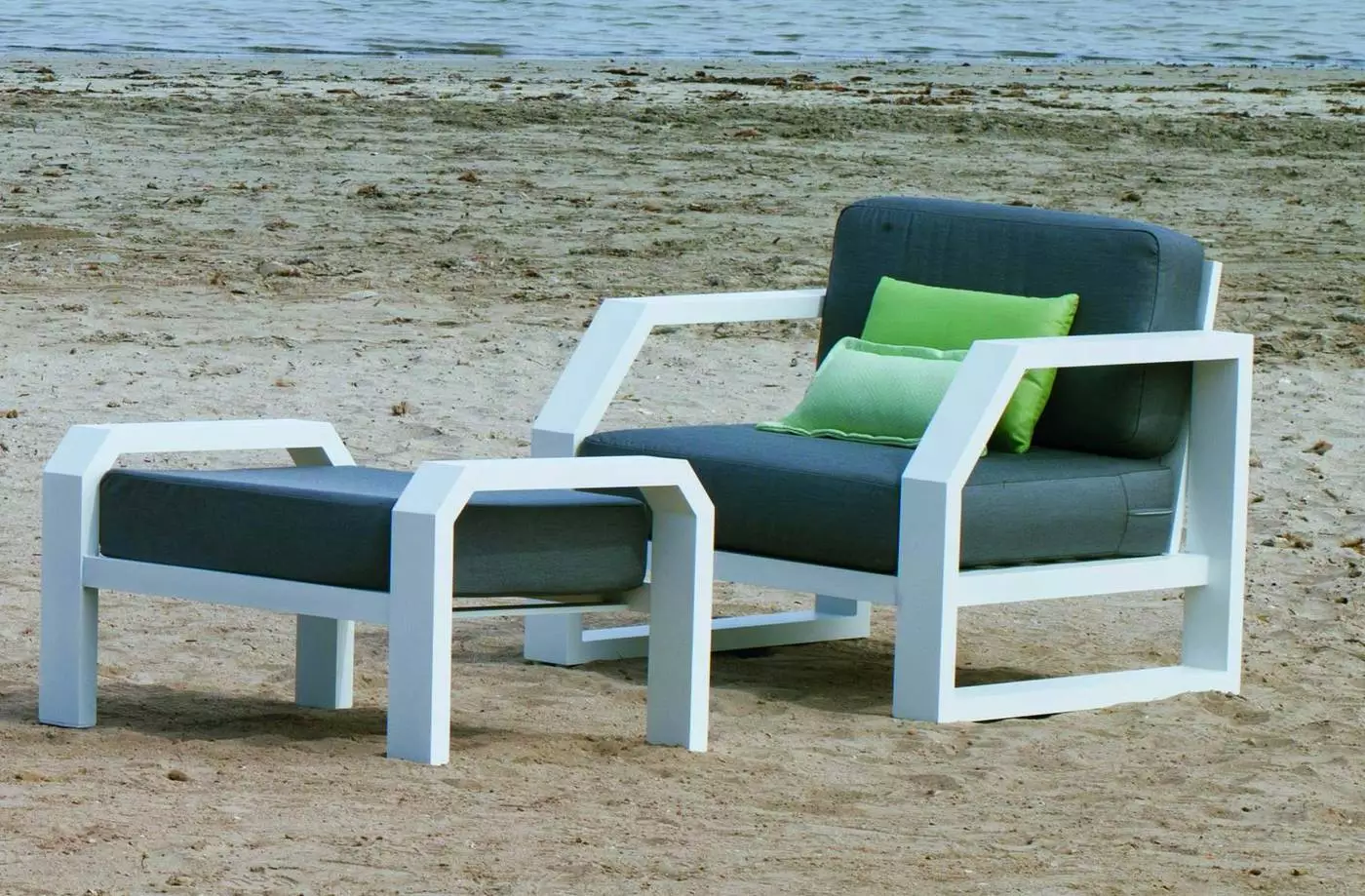 - 2 sillones de gran confort con respaldo y cojines desenfundables. Dimensiones (Ancho-Fondo-Alto): 94 x 88 x 82 cm.