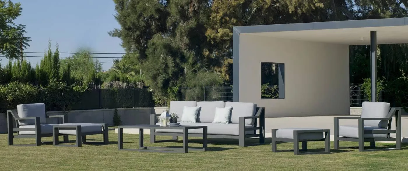 Con nuestro set de sofá gran confort para exterior fabricado en aluminio, podrás disfrutar de la comodidad y la elegancia que mereces en tu jardín. De elegante diseño y con una robusta estructura de aluminio, diseñada para proporcionar comodidad, es la mejor opción para relajarse, leer un libro o descansar, Está compuesto por un sofá de 3 plazas, dos sillones y una mesa de aluminio a juego, lo que lo convierte en la elección perfecta para compartir momentos inolvidables con tus seres queridos.