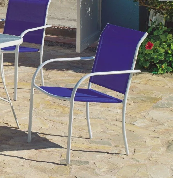 Además de su belleza, esta silla es sumamente práctica y funcional. Al ser apilable, podrás ahorrar espacio cuando no esté en uso y transportarla con facilidad. La estructura de acero garantiza su resistencia y durabilidad, mientras que el textilene azul le da un toque de frescura y comodidad.