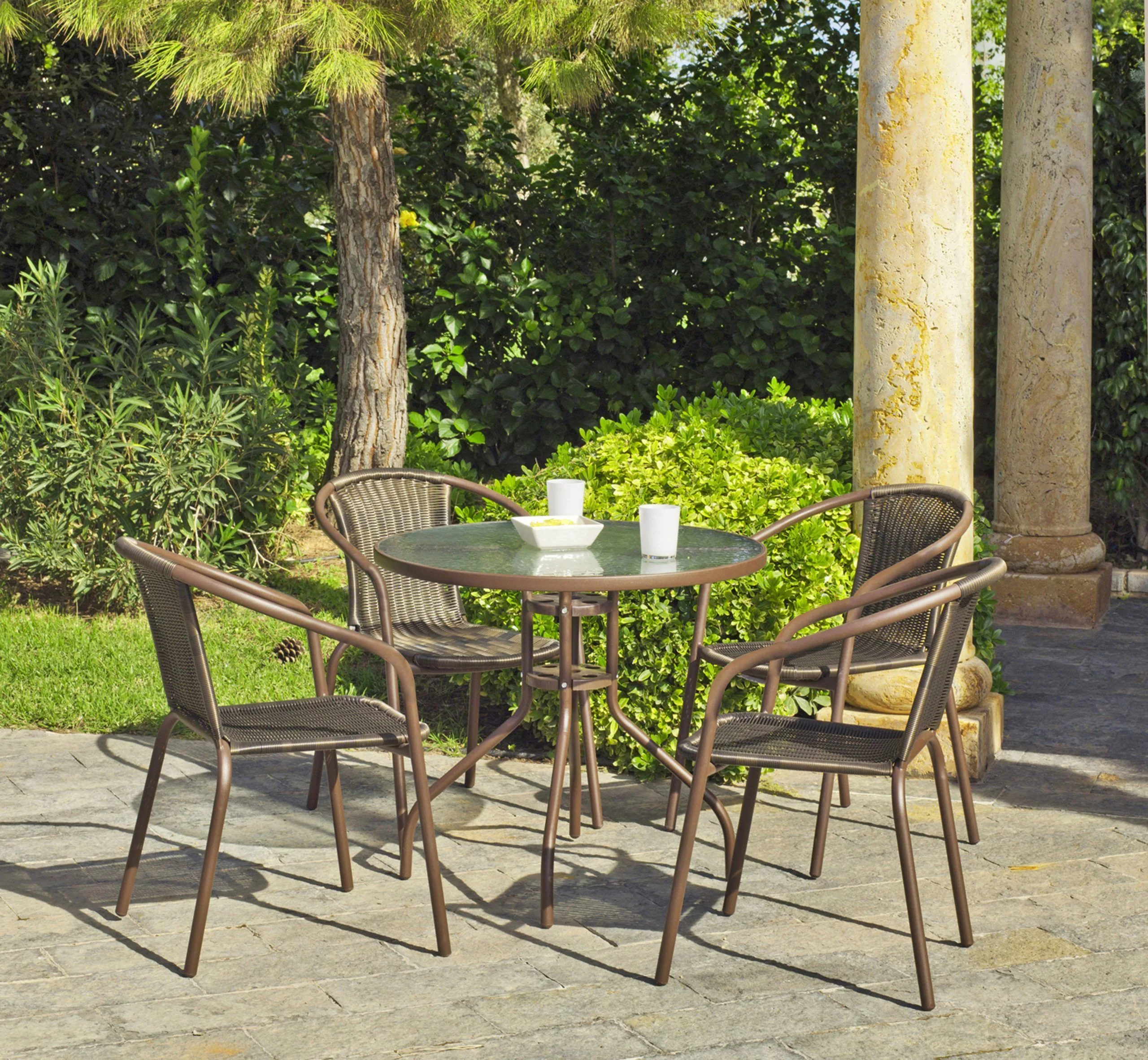 ¿Quieres disfrutar de tu espacio exterior con estilo y comodidad? Pues nuestra silla apilable de acero y ratán sintético color bronce para jardín puede ser la opción perfecta para ti.