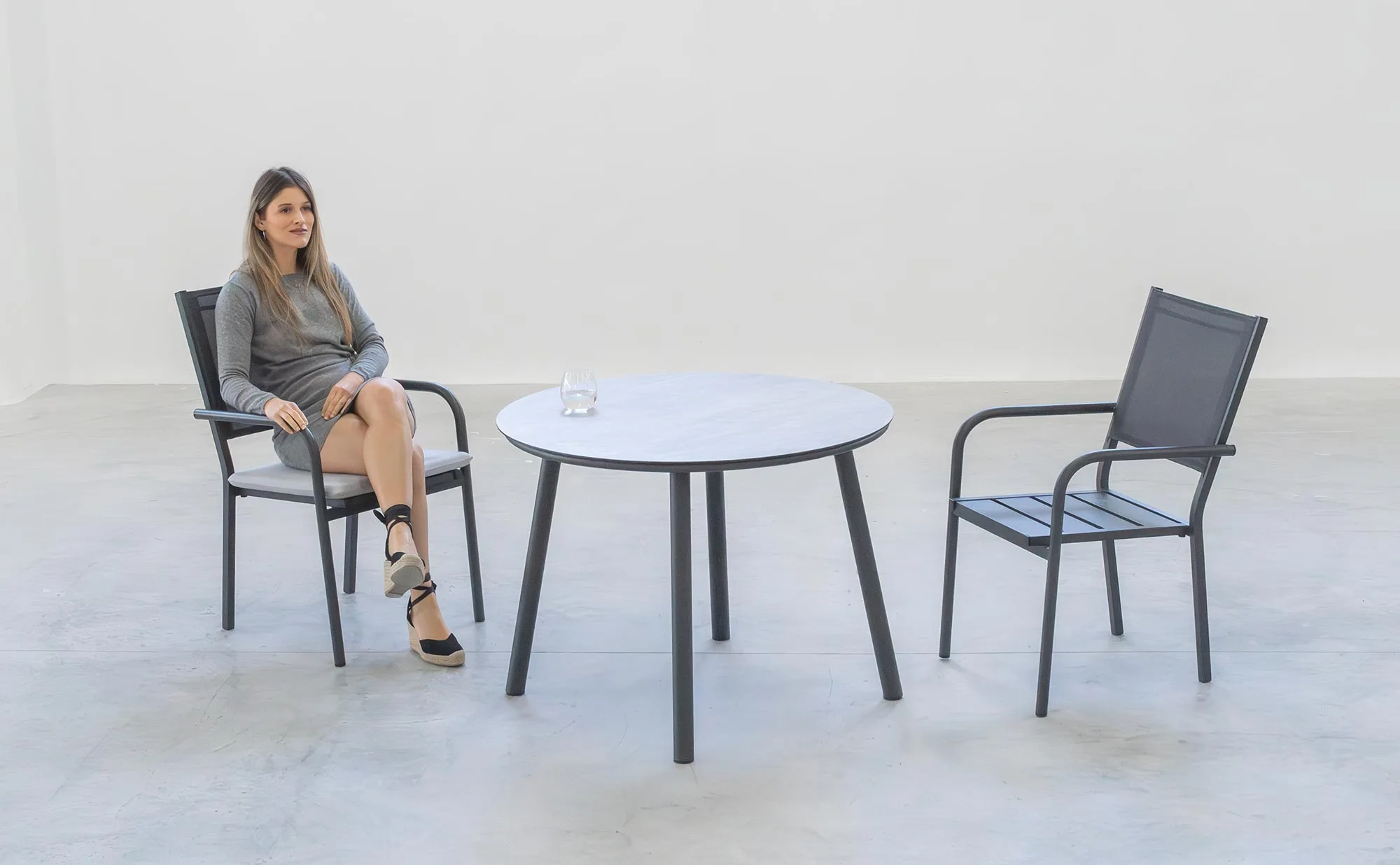 Elige entre 8 colores metálicos y mates para integrar la silla en cualquier paleta decorativa. Ideal para hoteles boutique, residencias de lujo o terrazas urbanas, su diseño modular permite combinarla con mesas y sofás de la misma gama. El aluminio añade un toque industrial-chic, mientras que el textilene aporta calidez sin comprometer la funcionalidad.
