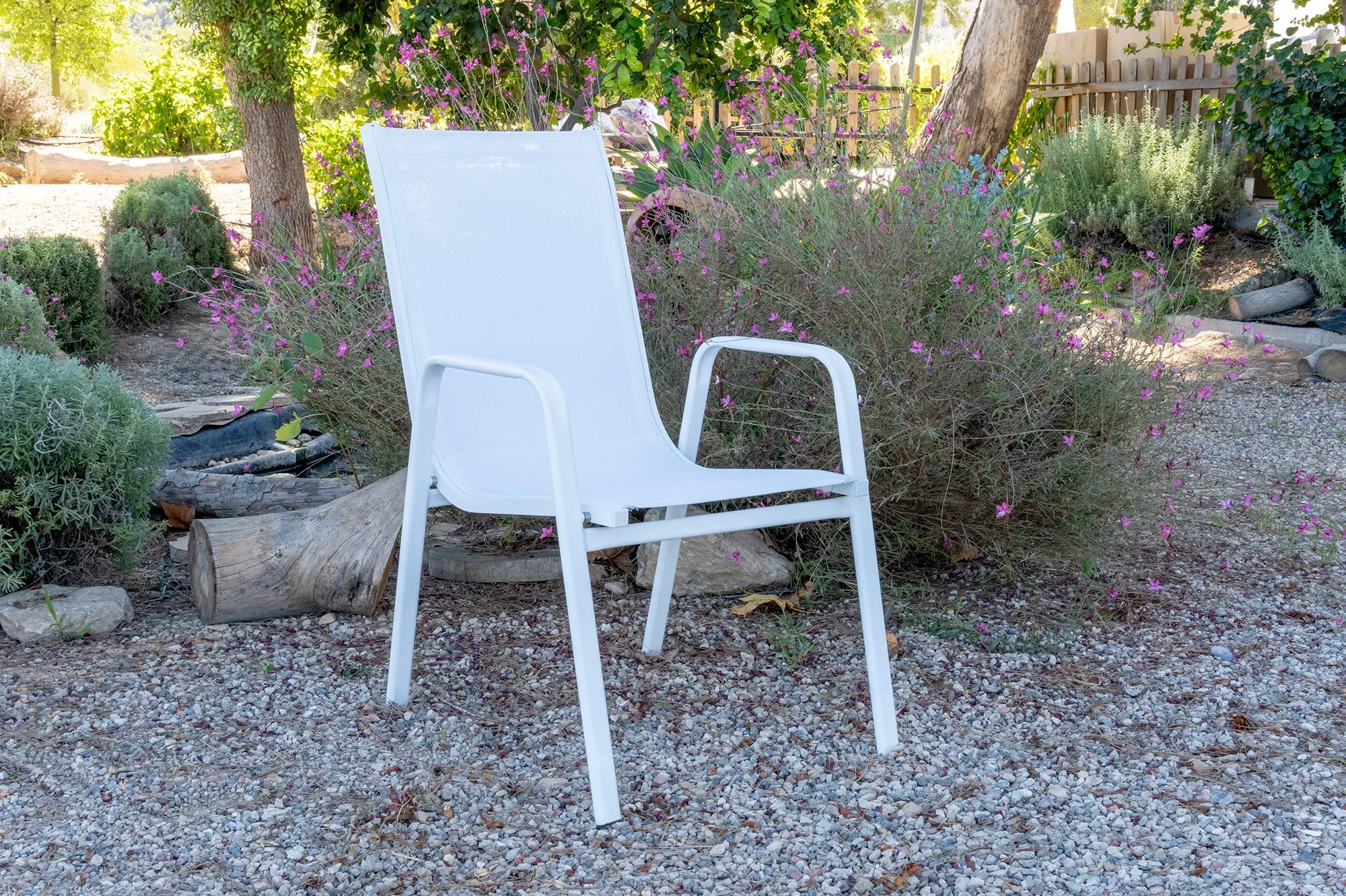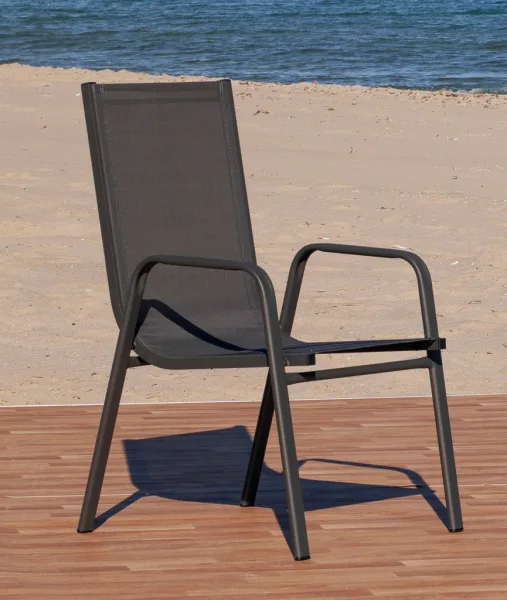 Relájate al aire libre con nuestra silla apilable de textilene y aluminio
