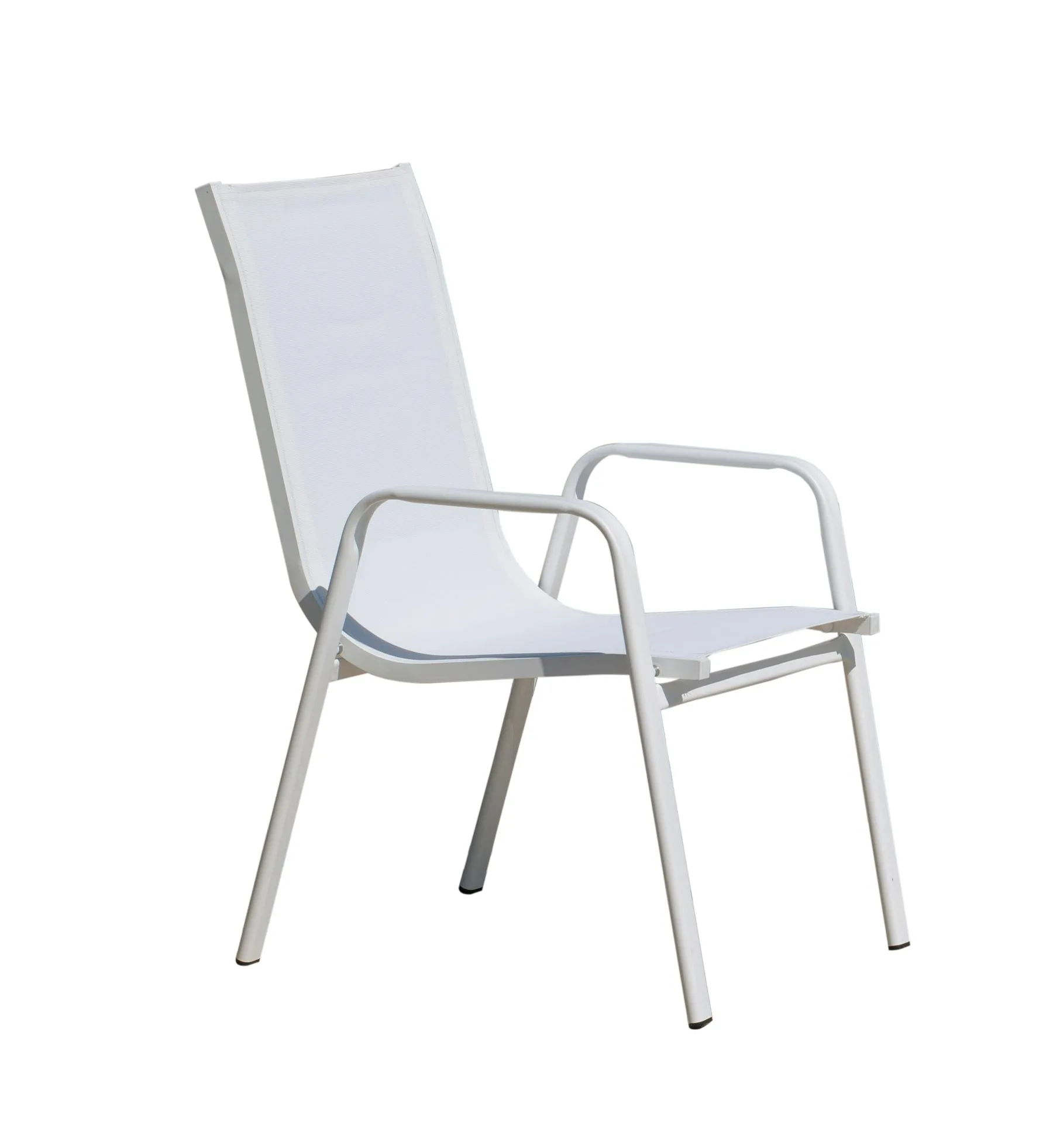 ¿Buscas una silla para exterior de textilene? ¡Tenemos justo lo que necesitas! Aquí os presentamos nuestra silla de textilene apilable. Está fabricada íntegramente en aluminio y textileno de máxima calidad. El tejido textilene y el aluminio son materiales 100% exclusivos para exterior y nos aseguran durabilidad y facilidad de mantenimiento, así como un seguro ante las inclemencias climáticas.
