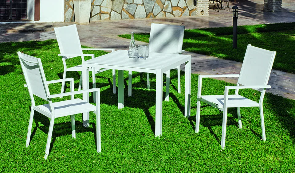 Su limpio y original diseño, otorgan a esta silla de jardín cómodas tanto modernidad como elegancia. Especialmente diseñado para soportar las condiciones adversas como el sol y la lluvia, así como los rigores del uso diario. Fabricamos la estructura en seis colores distintos; champagne, blanco, marrón, negro, plata y gris antracita.